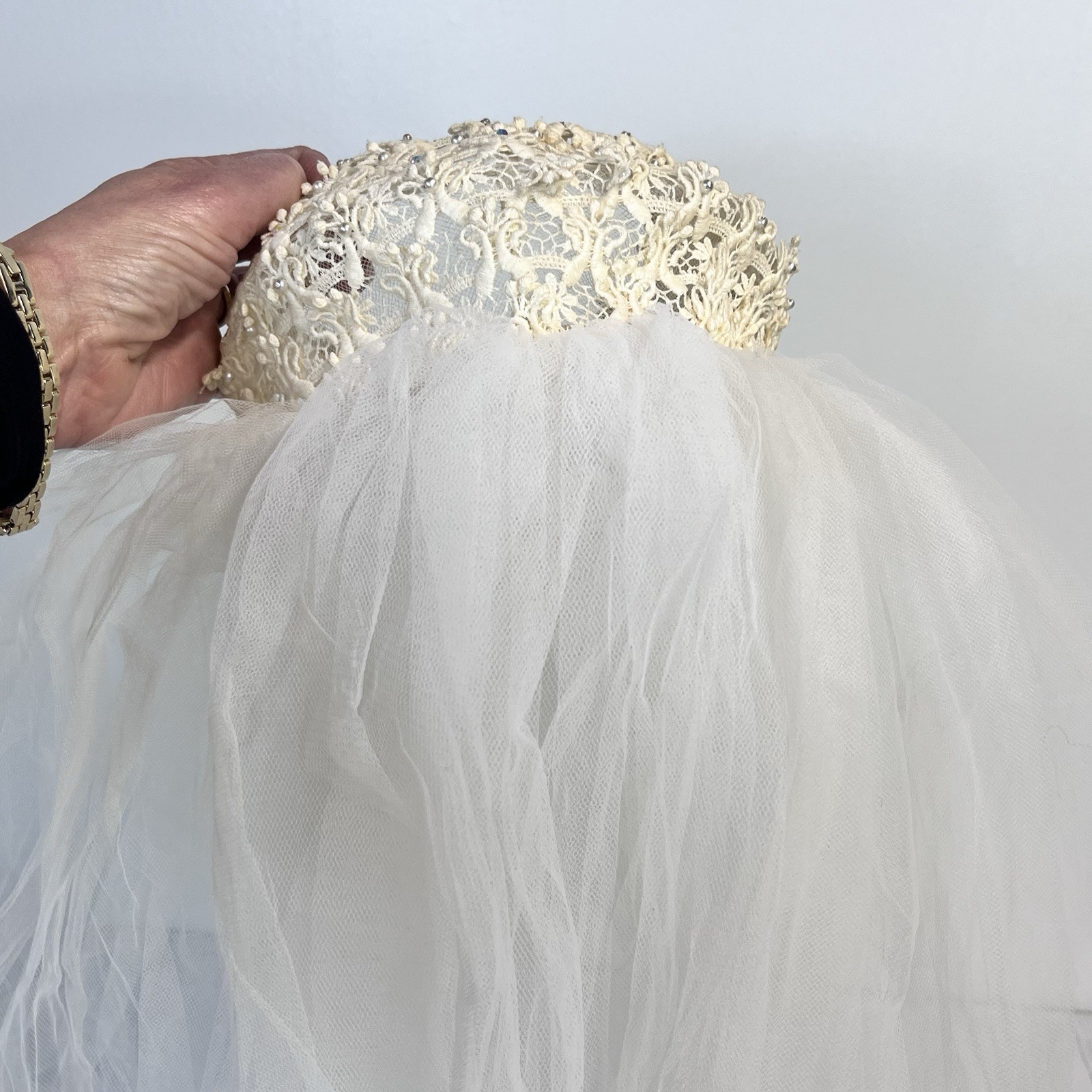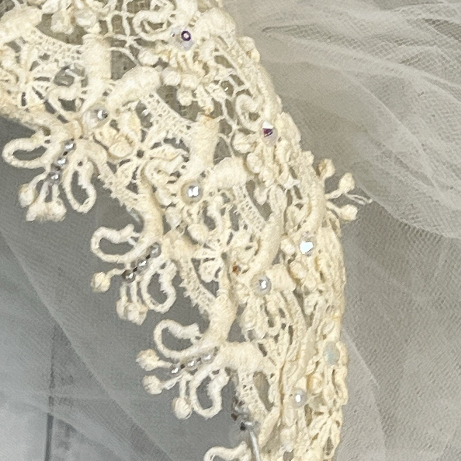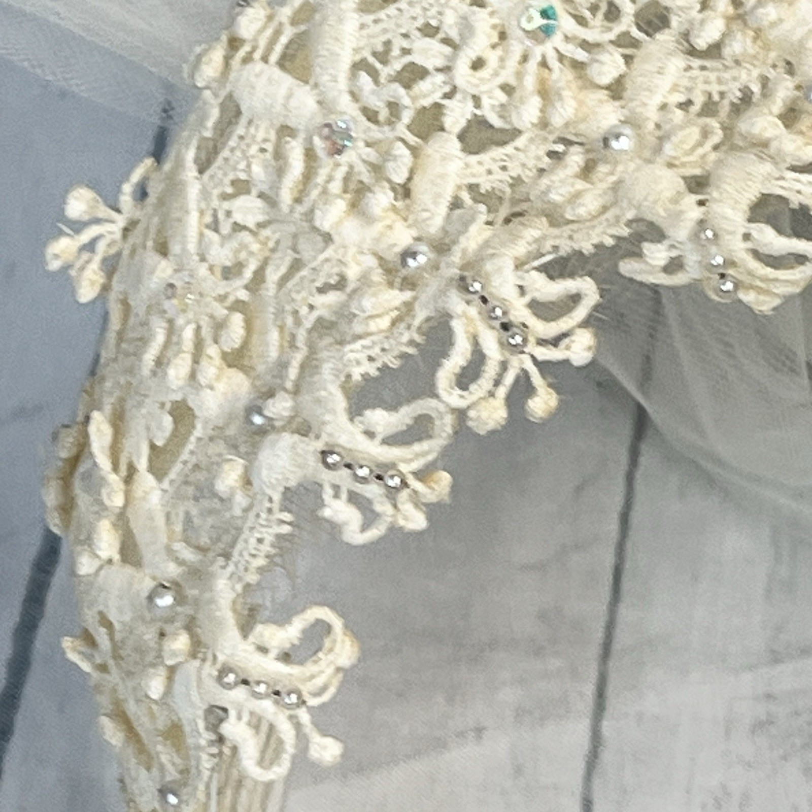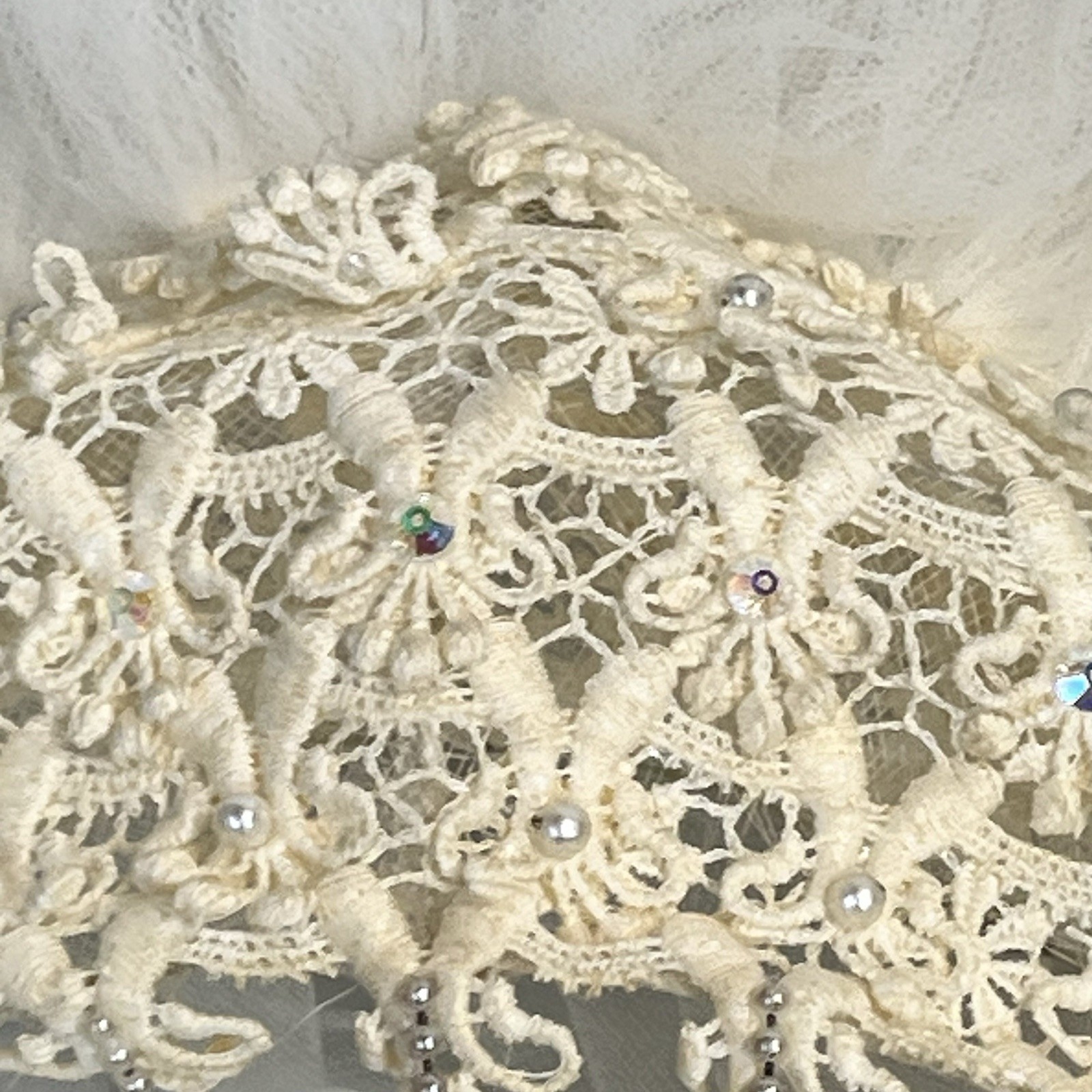 Vintage Ivory Blusher Bridal Veil 26 Lace Beaded Cap Headpiece 40's 50's 60's