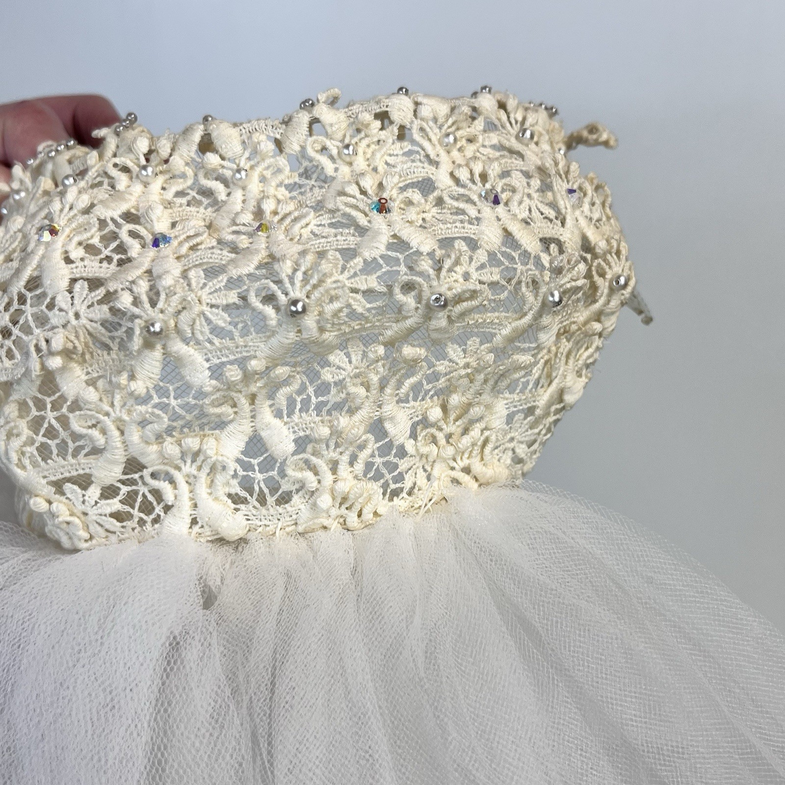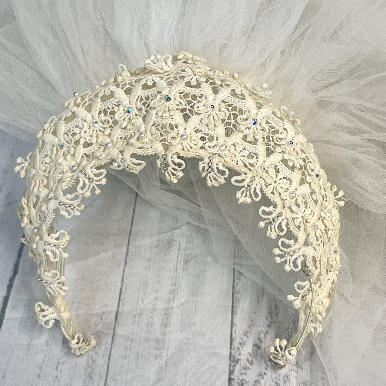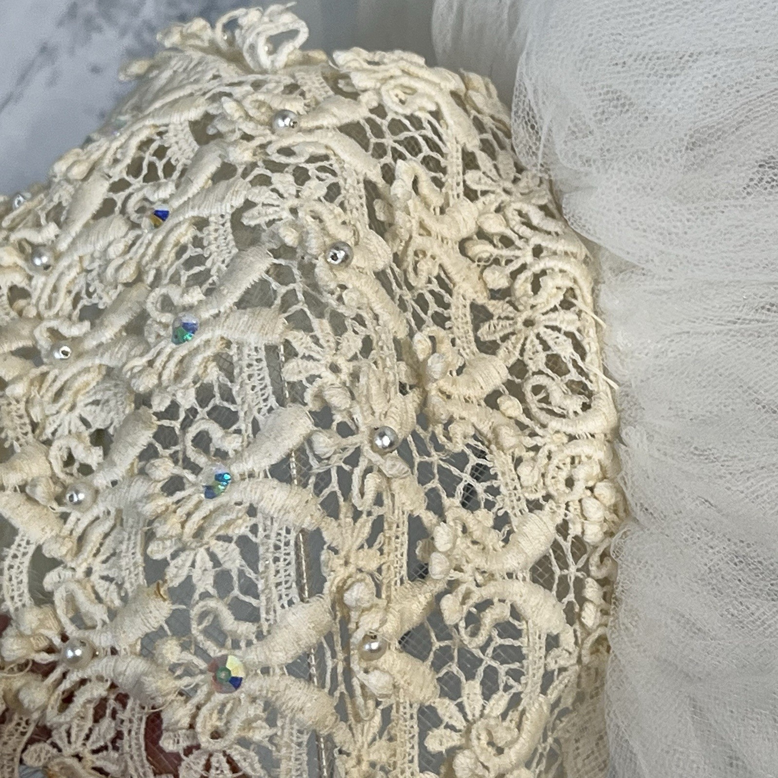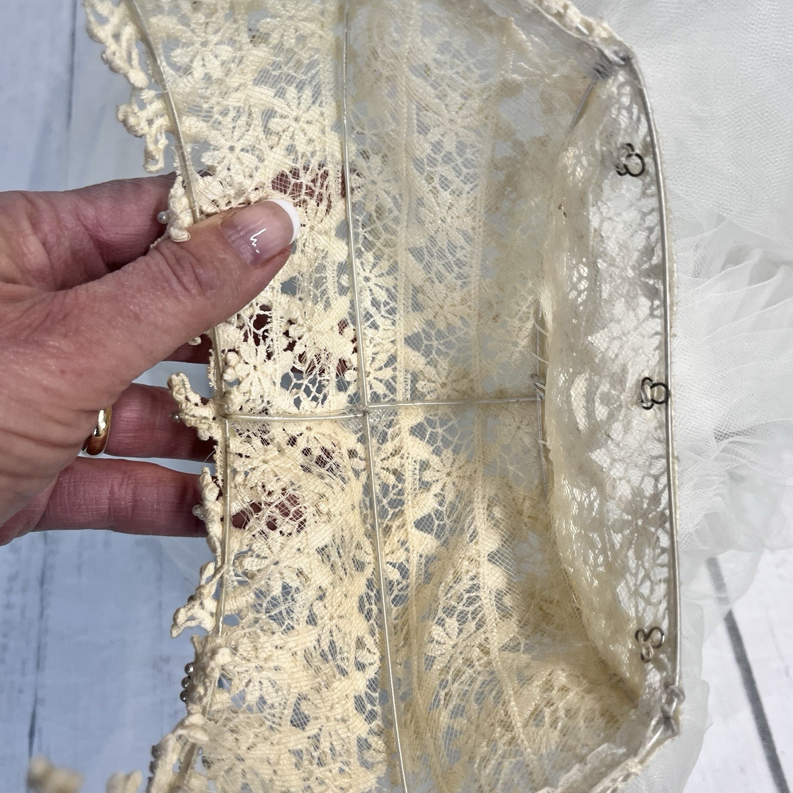 Vintage Ivory Blusher Bridal Veil 26 Lace Beaded Cap Headpiece 40's 50's 60's