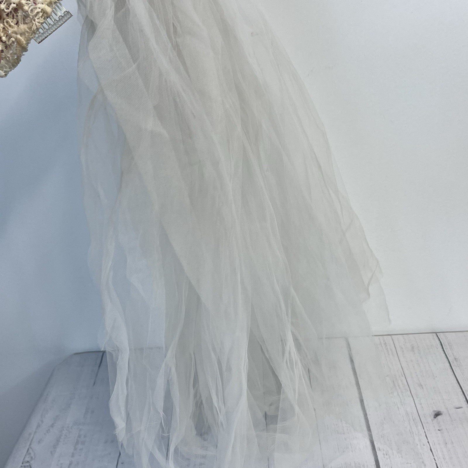 как выглядит Vintage Ivory Blusher Bridal Veil 26" Lace Beaded Cap Headpiece 40