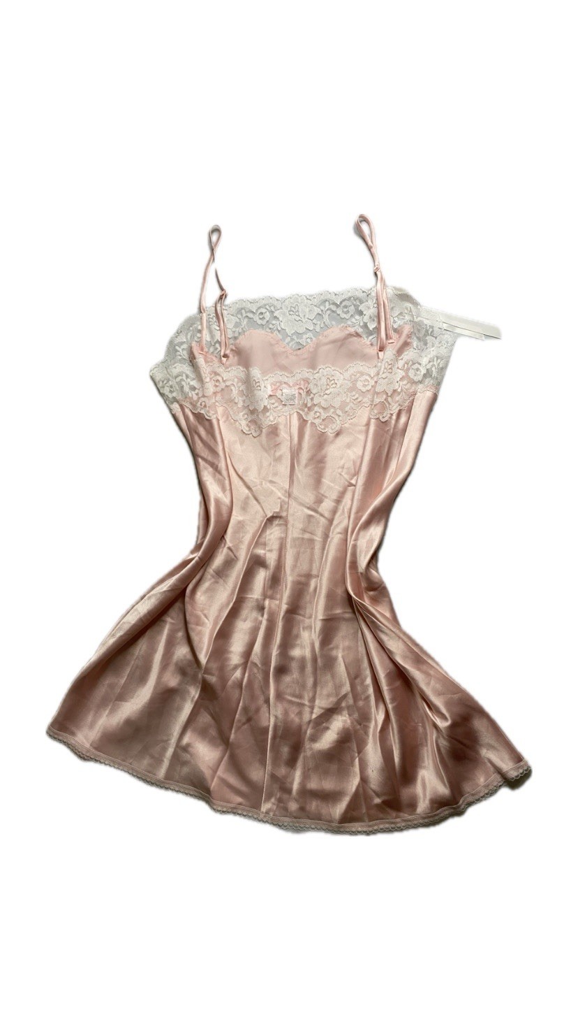 VTG Y2K Victoria s Secret Angels Slip Pink Lace Bows Coquette Satin Look Size L