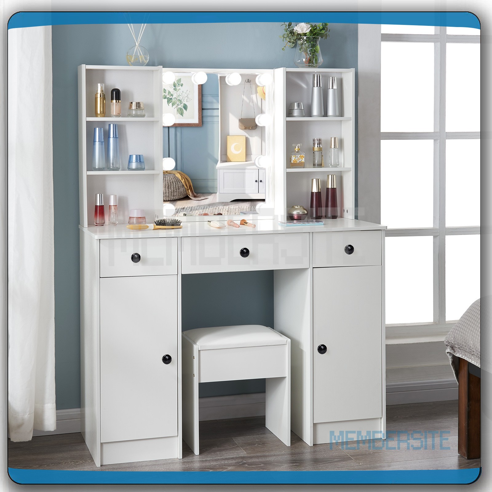 Особенности: With Stool, With Drawers, With 10 Led Lights, With Cupboard, With Mirror, With Shelves, Mirrored, With Open Shelves, With Large Drawers, With Lighted Mirror, Warm White, High Gloss