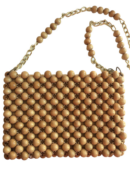 La Fleur Wooden Bead Shoulder Bag Purse 1960s Chain Strap Japan Wood 70s Vintage