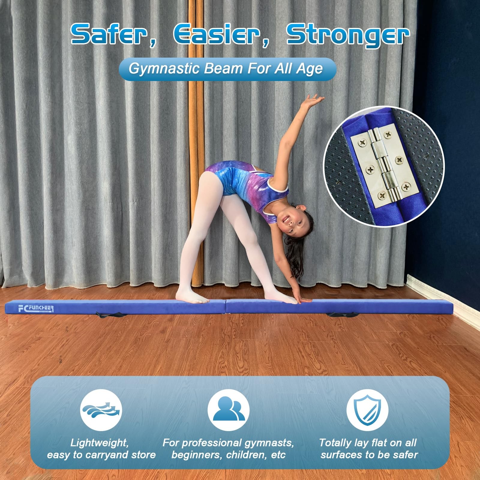 8FT Folding Balance Beam -Gymnastics Beam -Wood core Floor Beam - Anti-Slip B...
