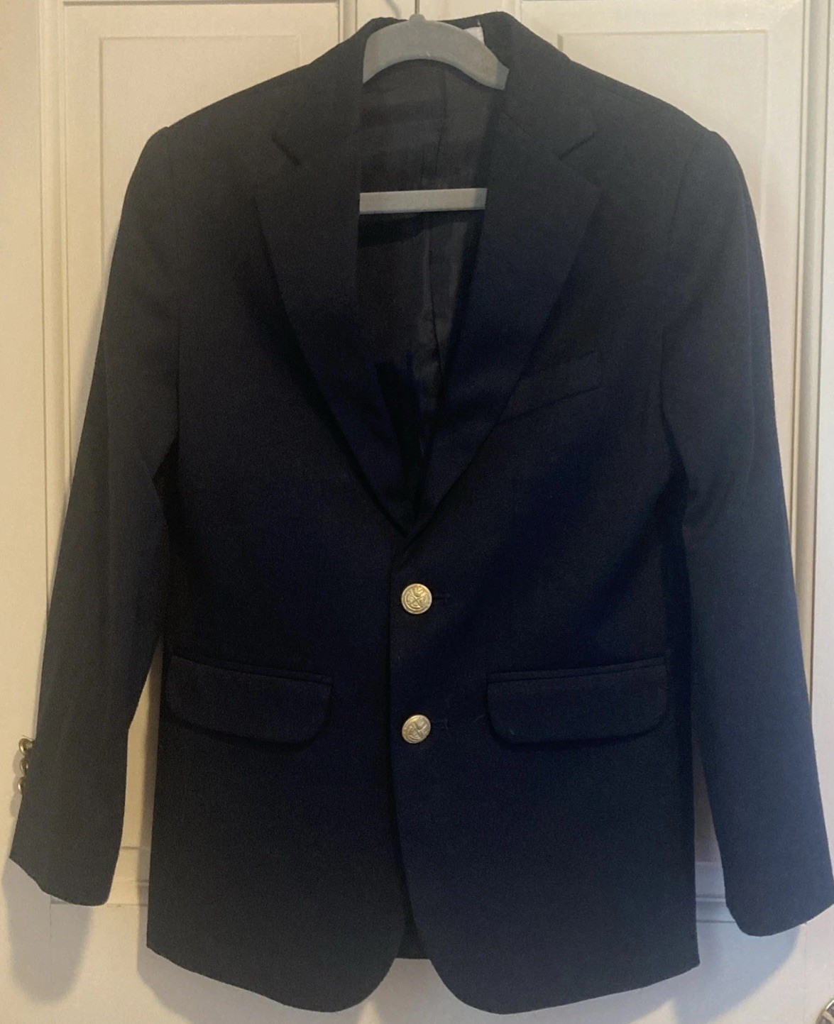 как выглядит Izod Navy Blue Boy s Blazer 8 Wool Poly Rayon Fully Lined Brass Buttons Size 8 фото