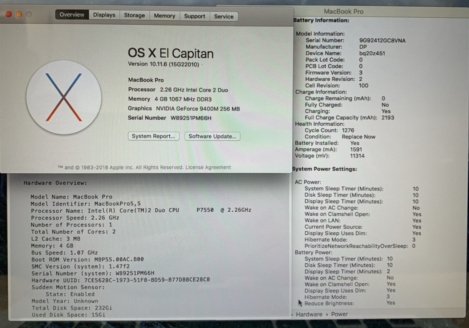 MacBook Pro 13 2009 2.26GHz Core2Duo 4GB RAM 250GB HDD MacOS El Capitan
