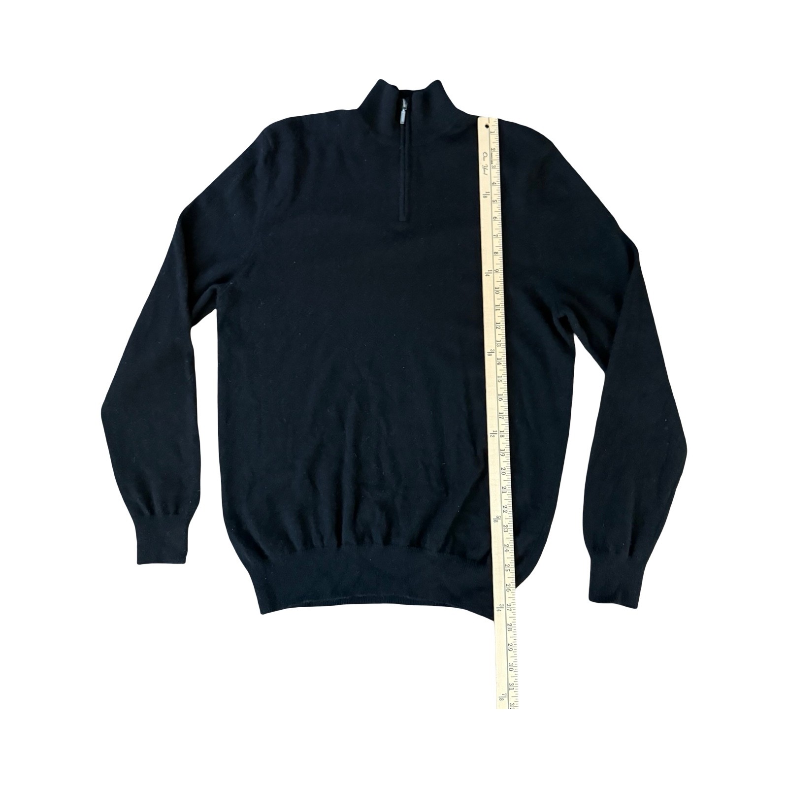 как выглядит The Mens Store Bloomingdales 100 Cashmere 1/4 Zip Pullover Sweater Black Sz M фото