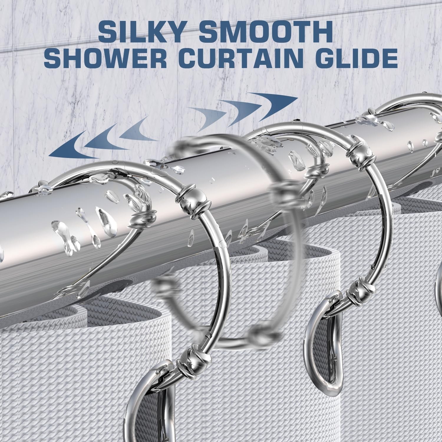 как выглядит Shower Curtain Rings 12 Pack Round Shower Curtain Hooks For Bathroom Glide Nicke фото