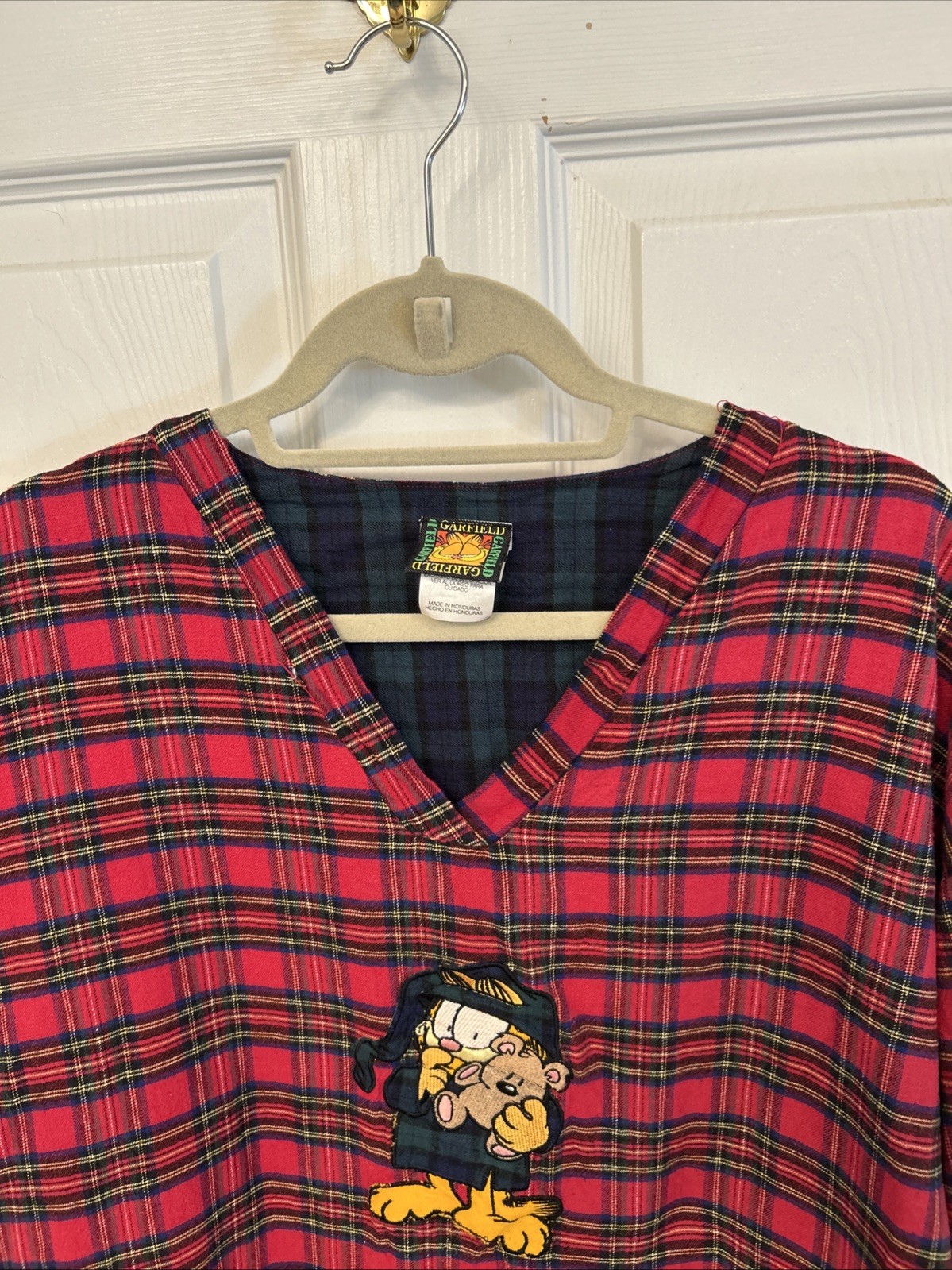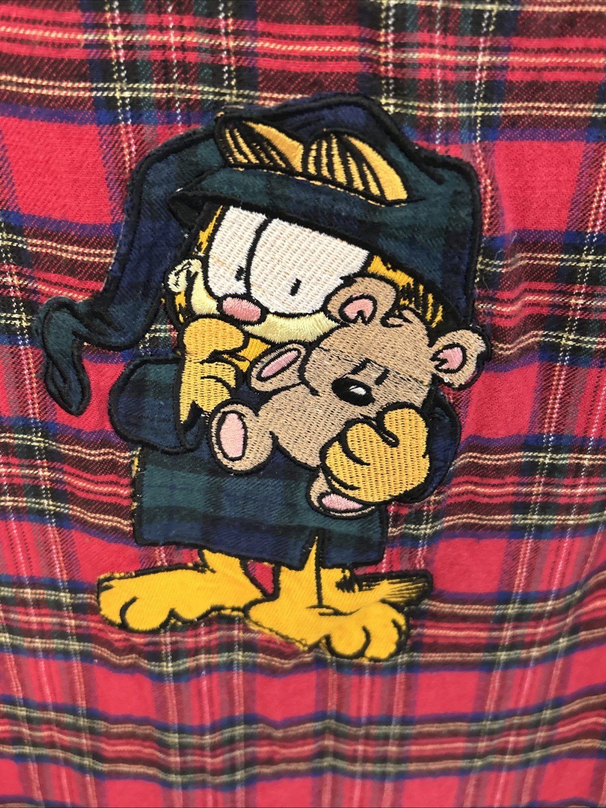 VTG Garfield Red Plaid Sleep Shirt Pajama XL