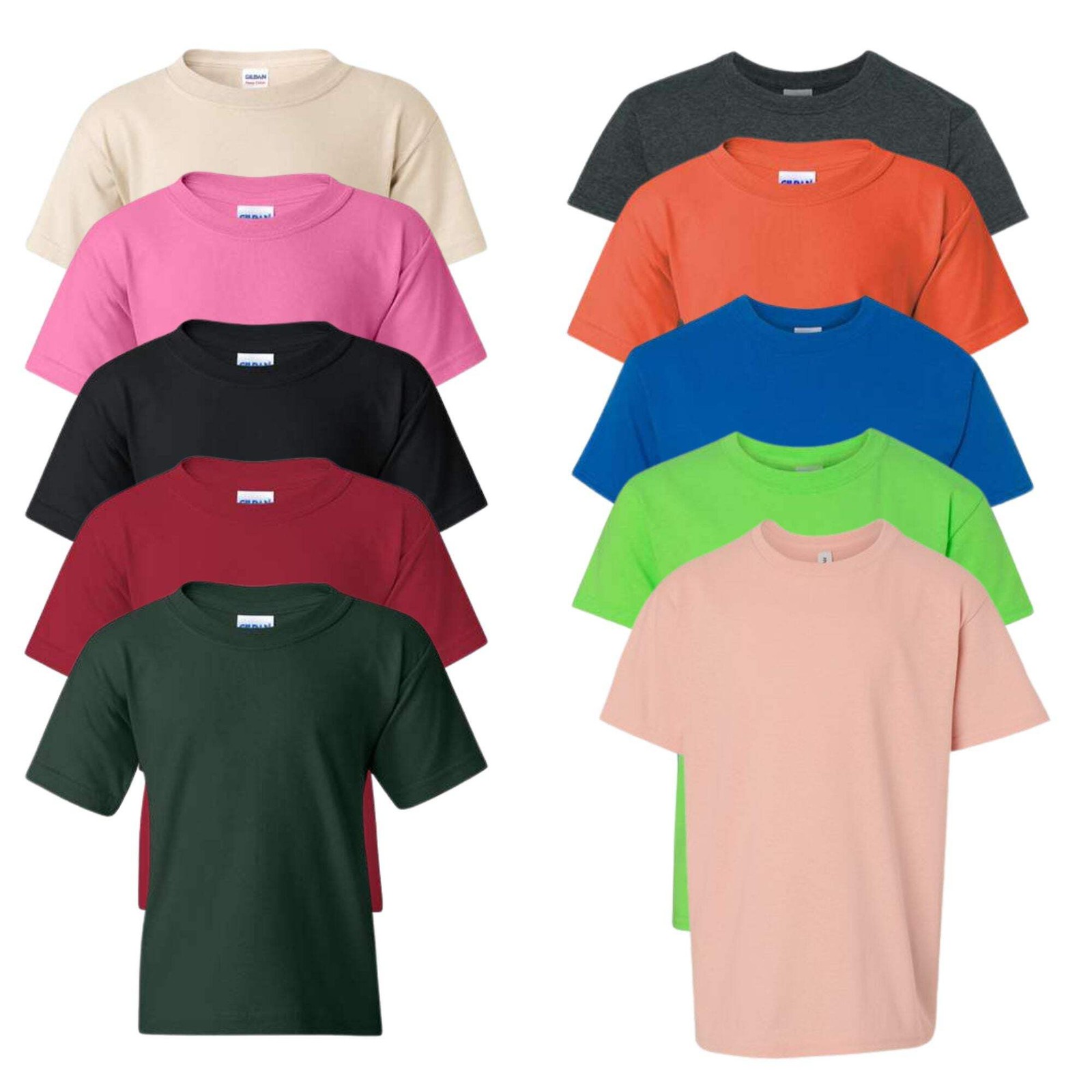 Gildan Youth T Shirts Boys Girls Undershirts Short Sleeve Cotton Plain 10-Pack