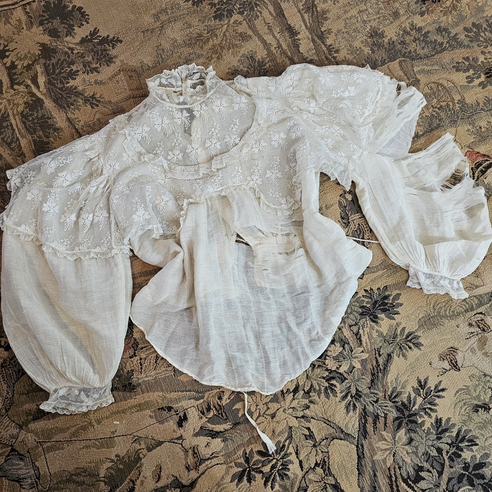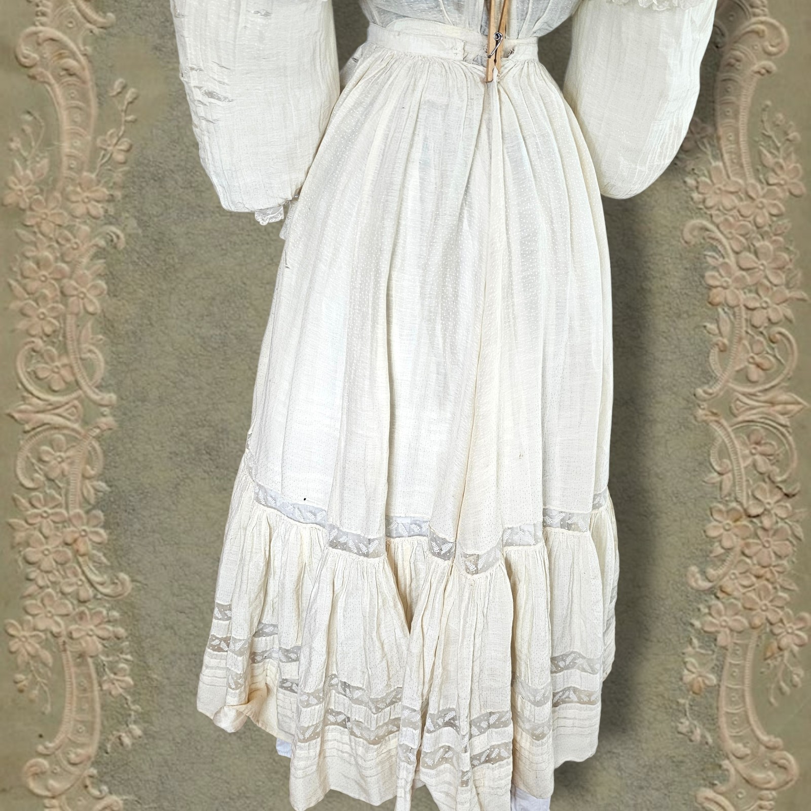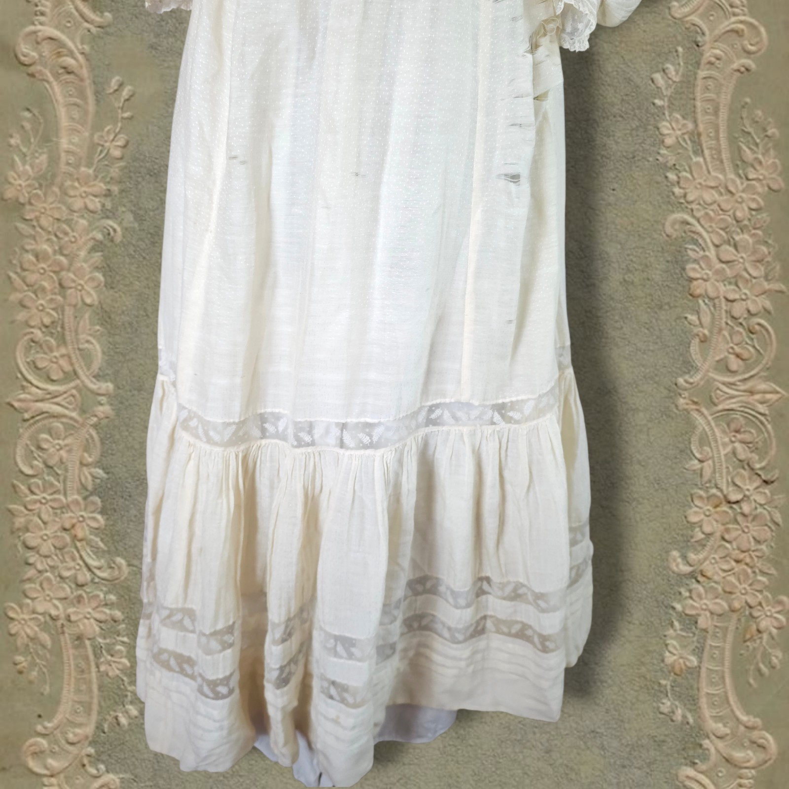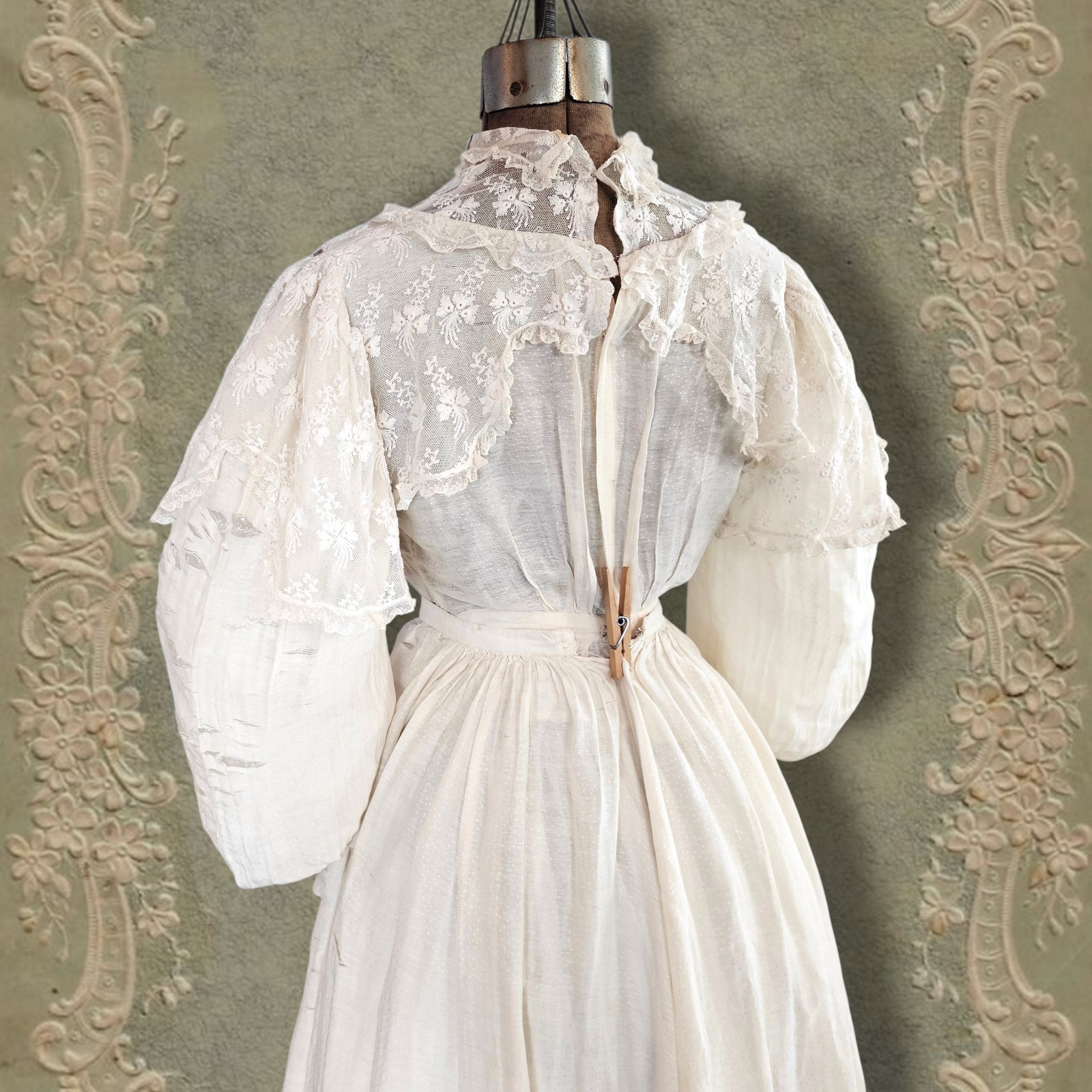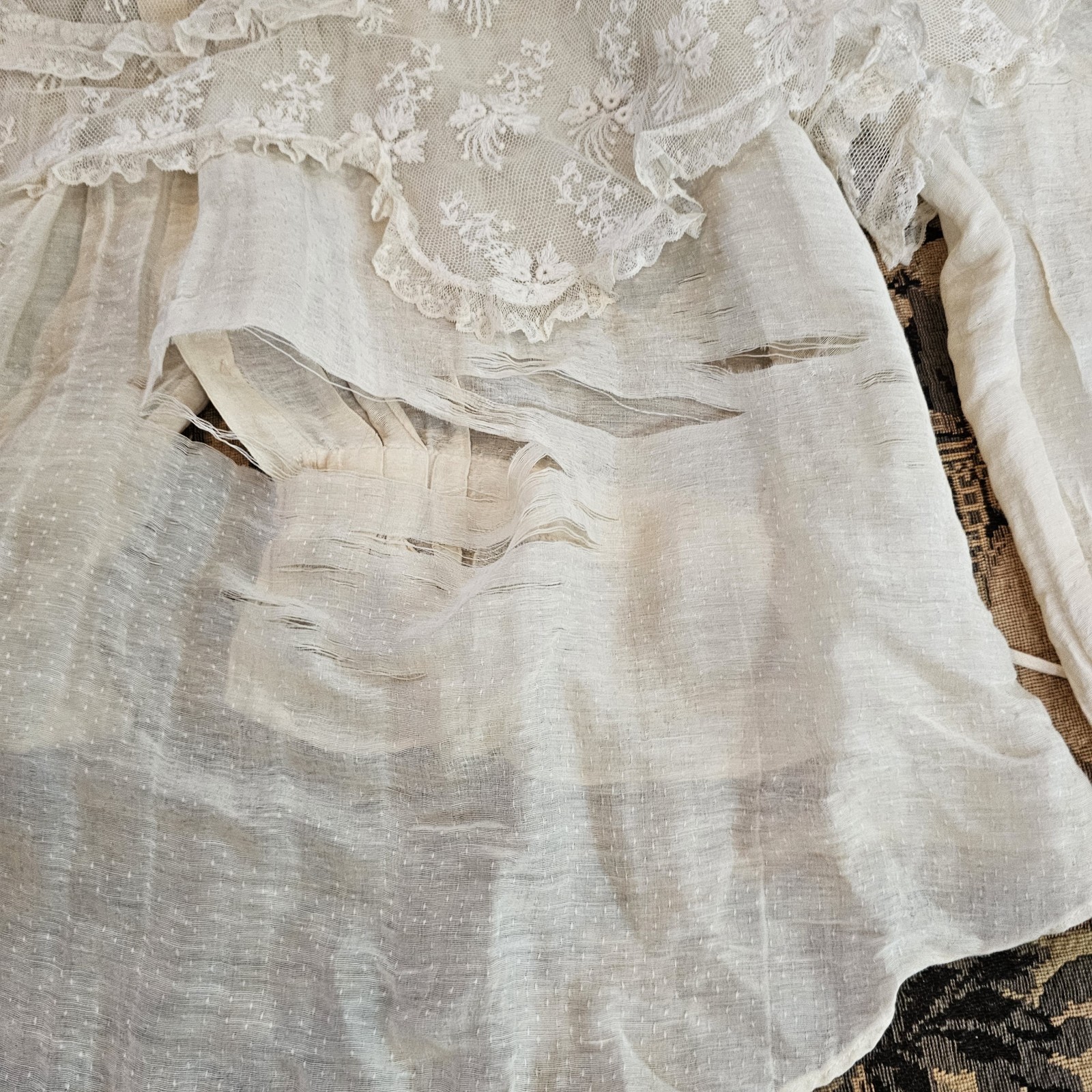 как выглядит 1910s Antique Edwardian 2 Pc Large Puff Sleeve Lace Cape Dress Gown White AS IS фото