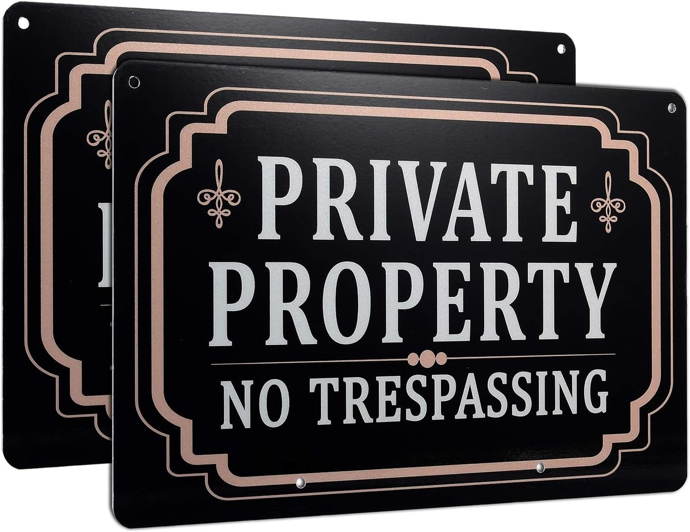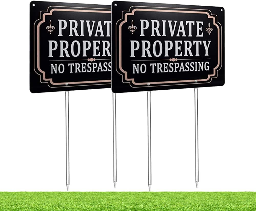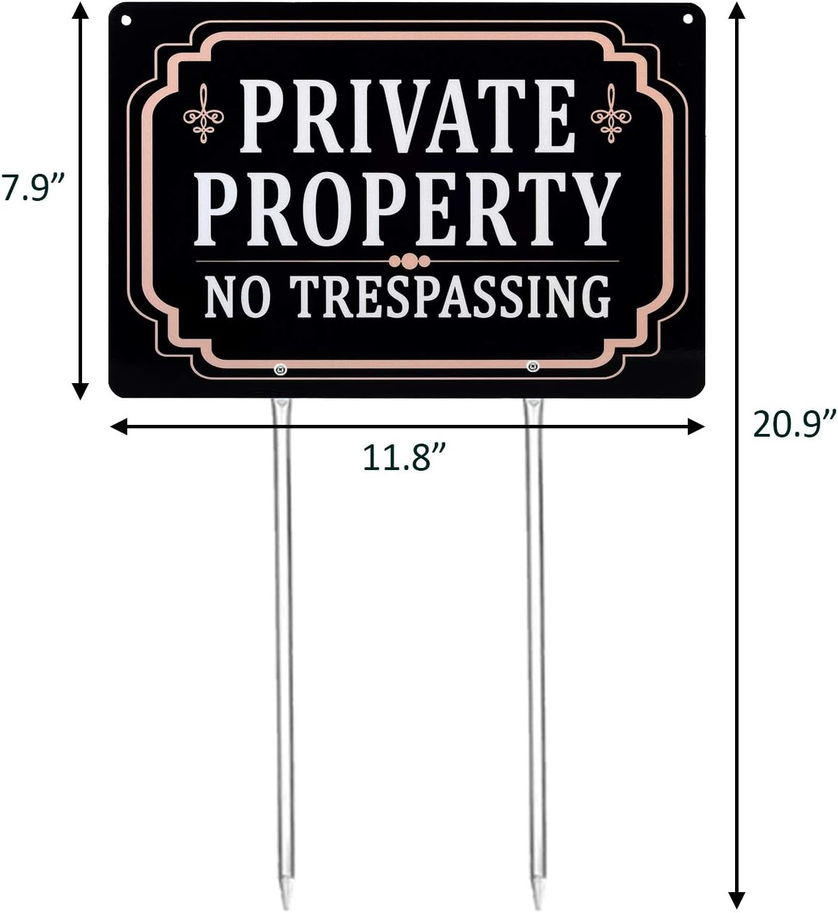 2 Pack Private Property No Trespassing Sign, Aluminum, 12 X 8, 14 Metal Stake