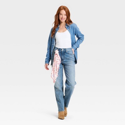 Women's Valentine's Day Highest-Rise Vintage Straight Embellished Jeans