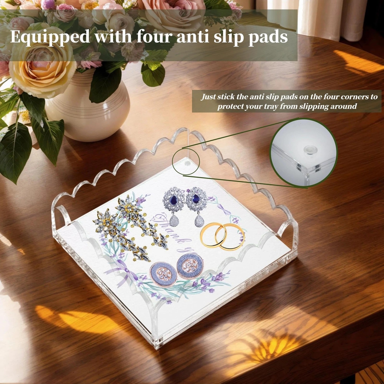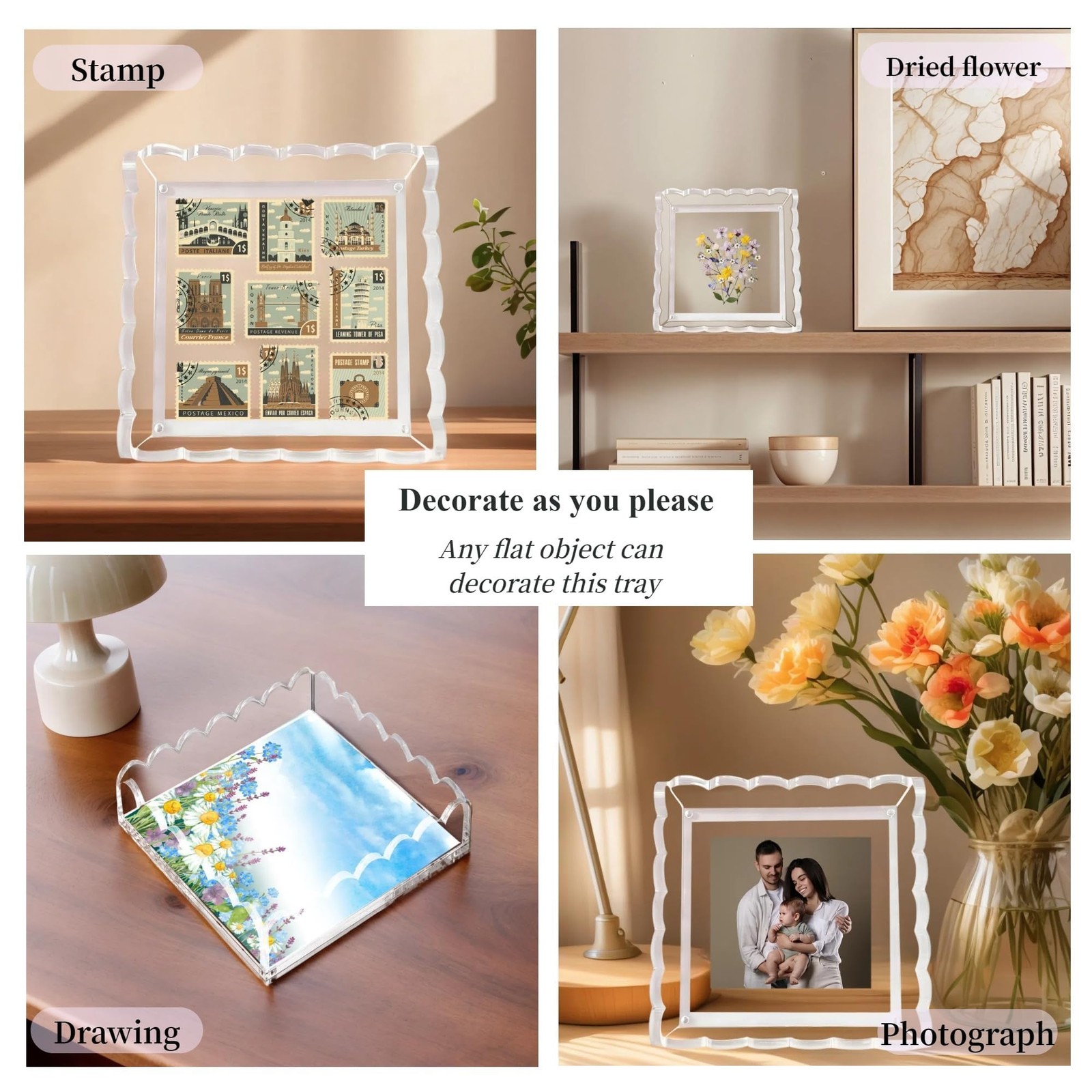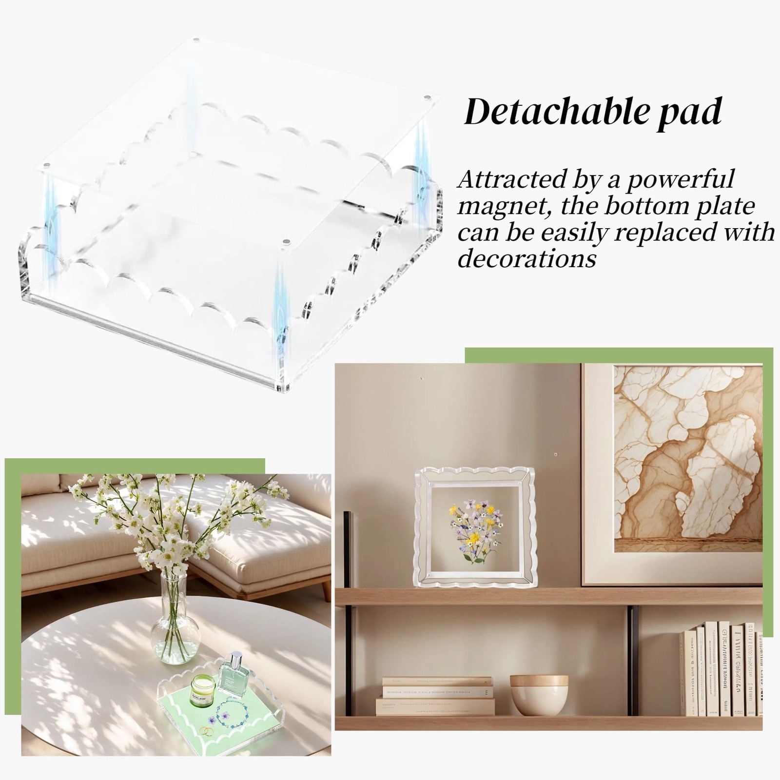 Scalloped Acrylic Tray with Magnetic Mat - 8x8in Customizable Display for Pho...