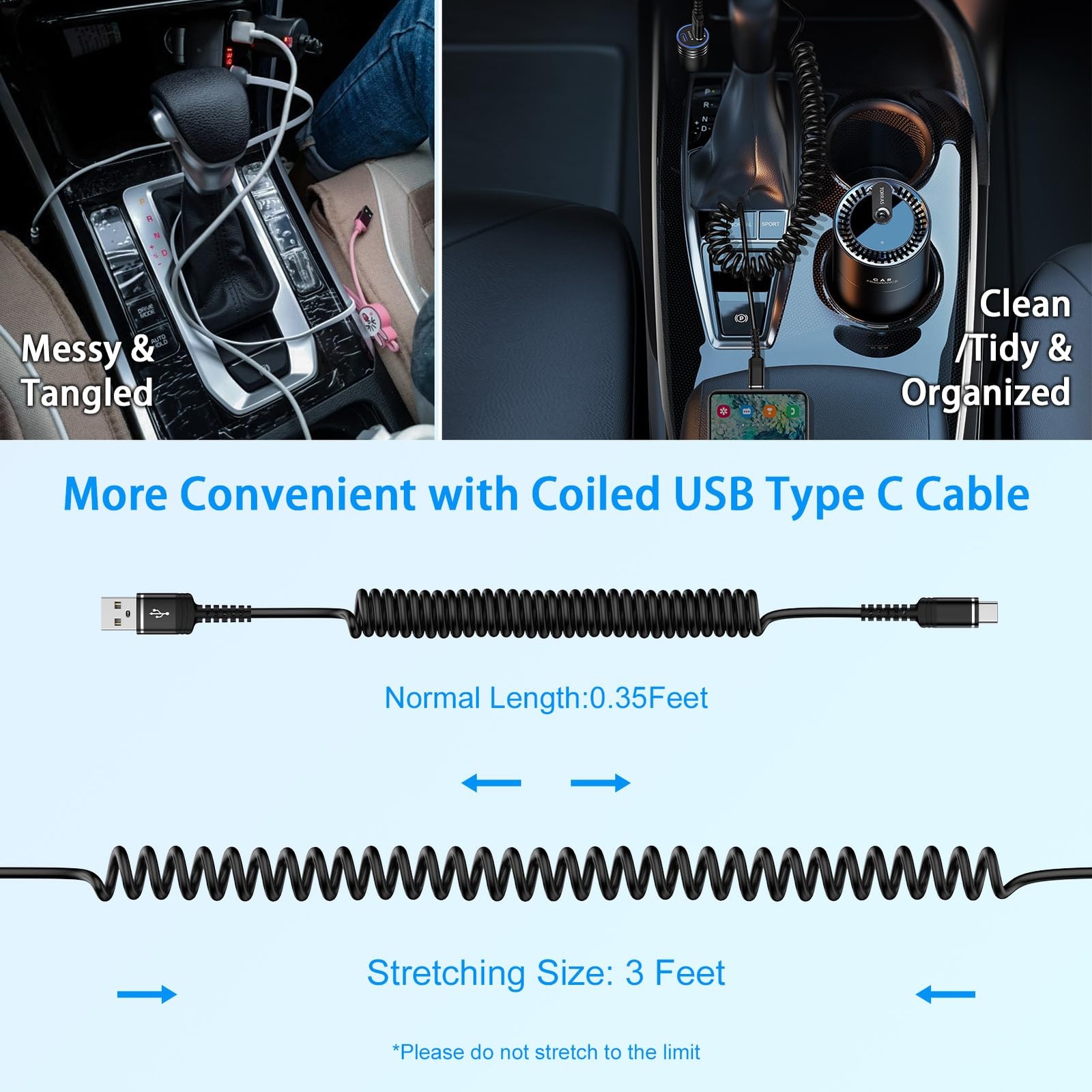 Fast Charger Cable Coiled USB C for Car 3FT Android Auto Type A to C