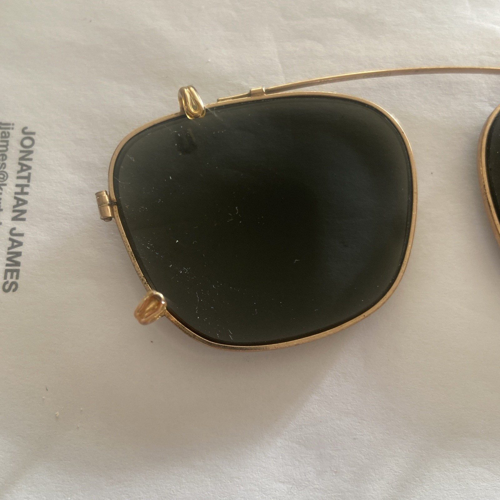 как выглядит Vintage American Optical Aviator Clip Ons Gold w/ Gray Glass Lenses 48 x 40 mm фото