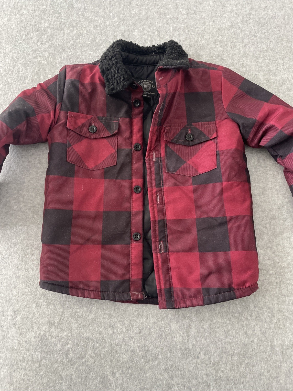 как выглядит Kids Checkered Jacket Fleece Collar Red Black Sz 2T Buffalo David Bitton фото