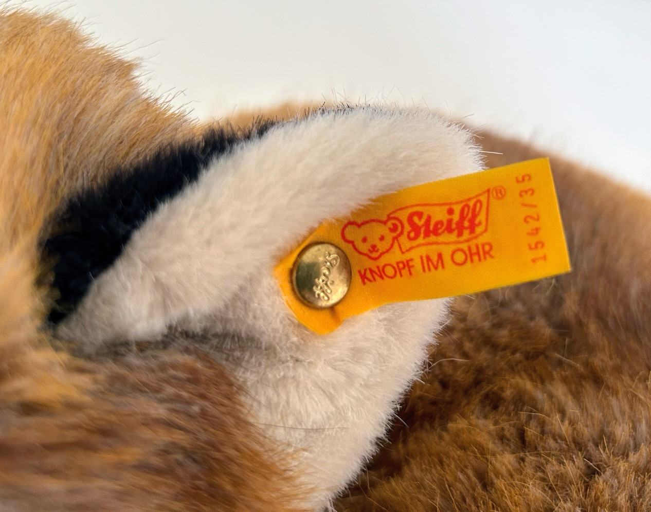 Vintage Steiff Red Fox Curled Up 1542/35 Tag in Ear, Very Good Condition