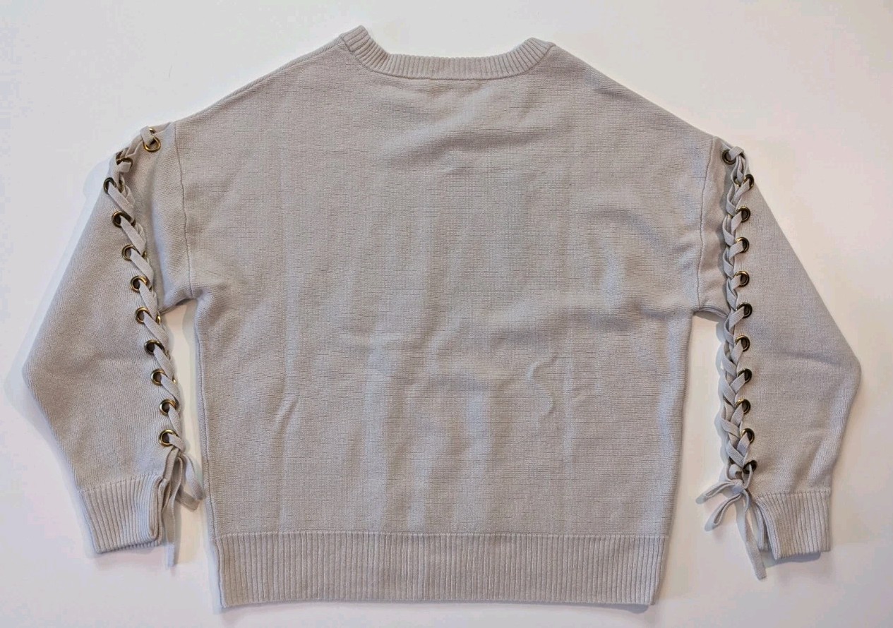 Tahari Wool Cashmere Lace-up Sleeve Crewneck Sweater Small Chalk NWT 295 MSRP