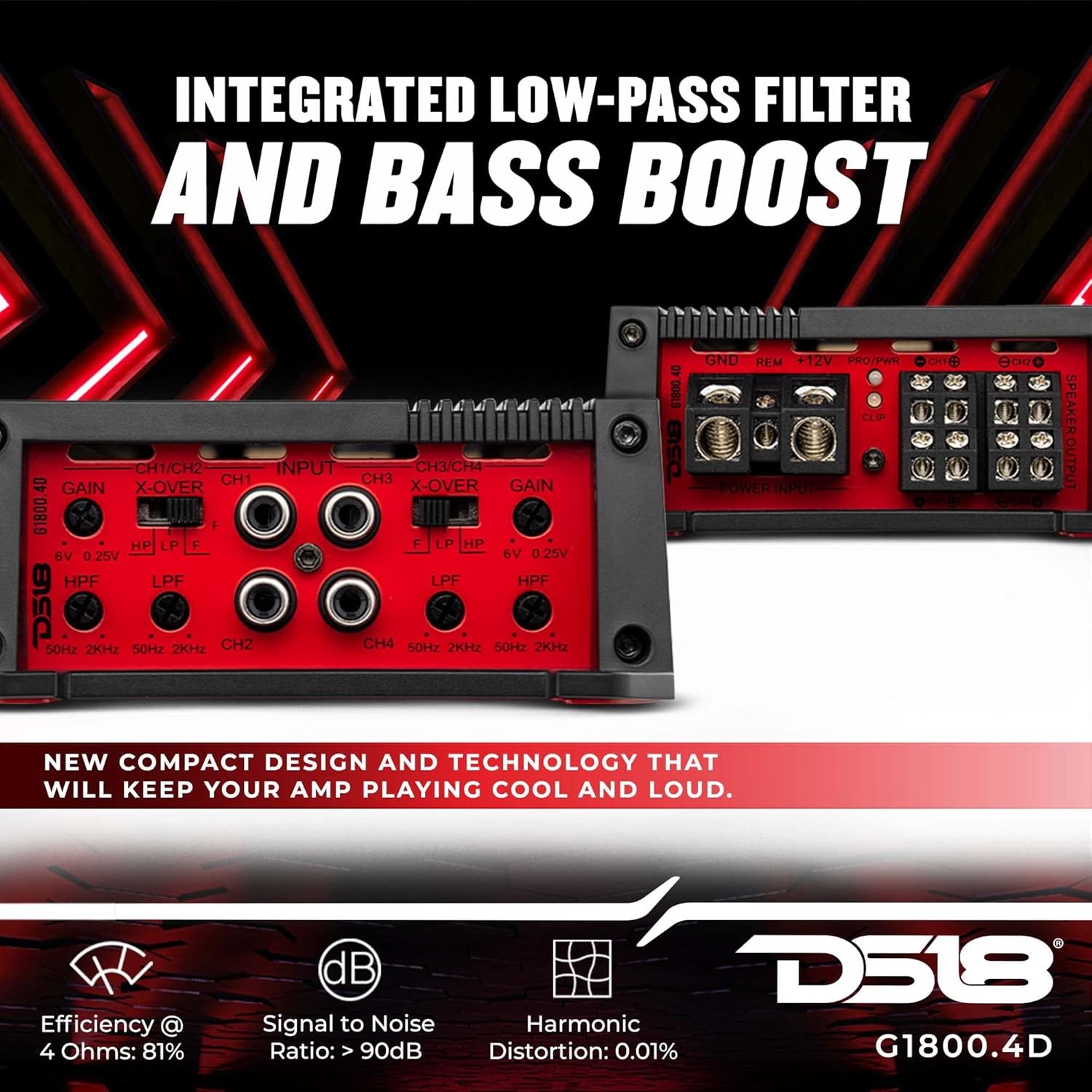 как выглядит DS18 G1800.4D GEN-X FULL-RANGE CLASS-D 4-CHANNEL AMPLIFIER 4 x 150W RMS 4-OHM фото