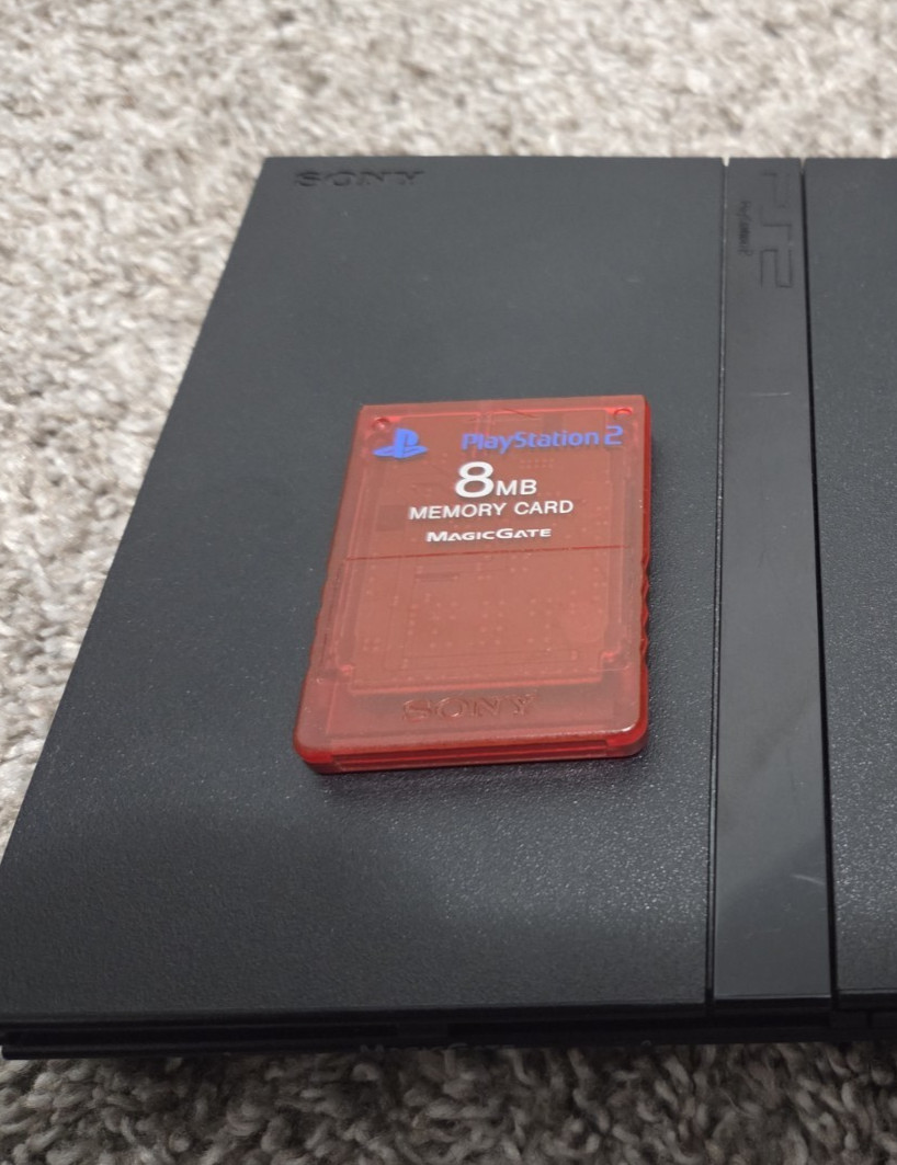 Sony PlayStation 2 Slim Console, Cords, Controller Memory Card Chip