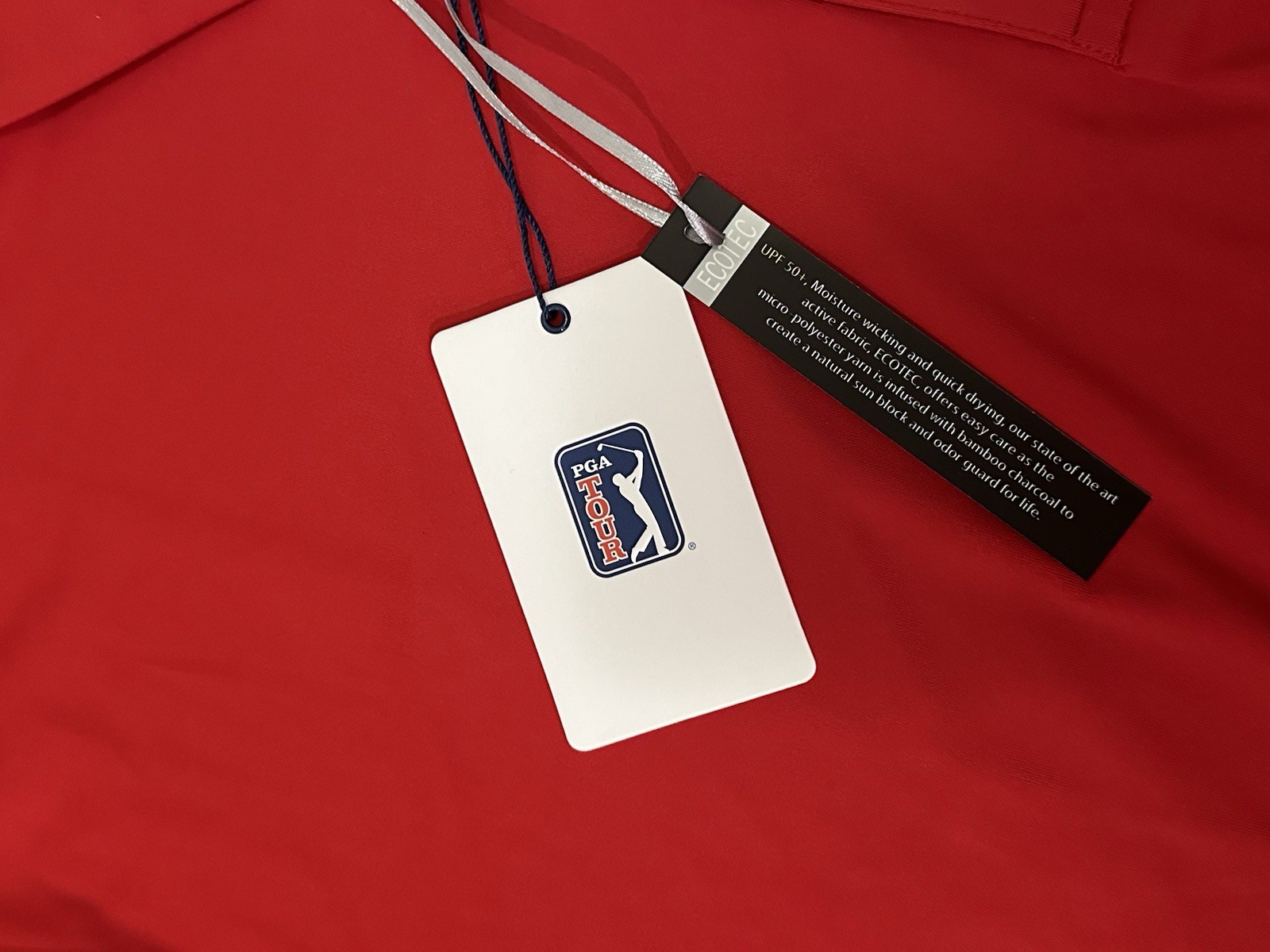 как выглядит NWT Men s PGA Tour Championship UPF 50 Red Short Sleeve Golf Polo Shirt- XL фото