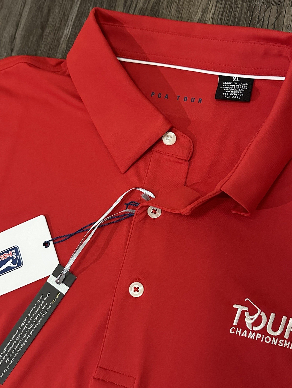 NWT Men s PGA Tour Championship UPF 50 Red Short Sleeve Golf Polo Shirt- XL