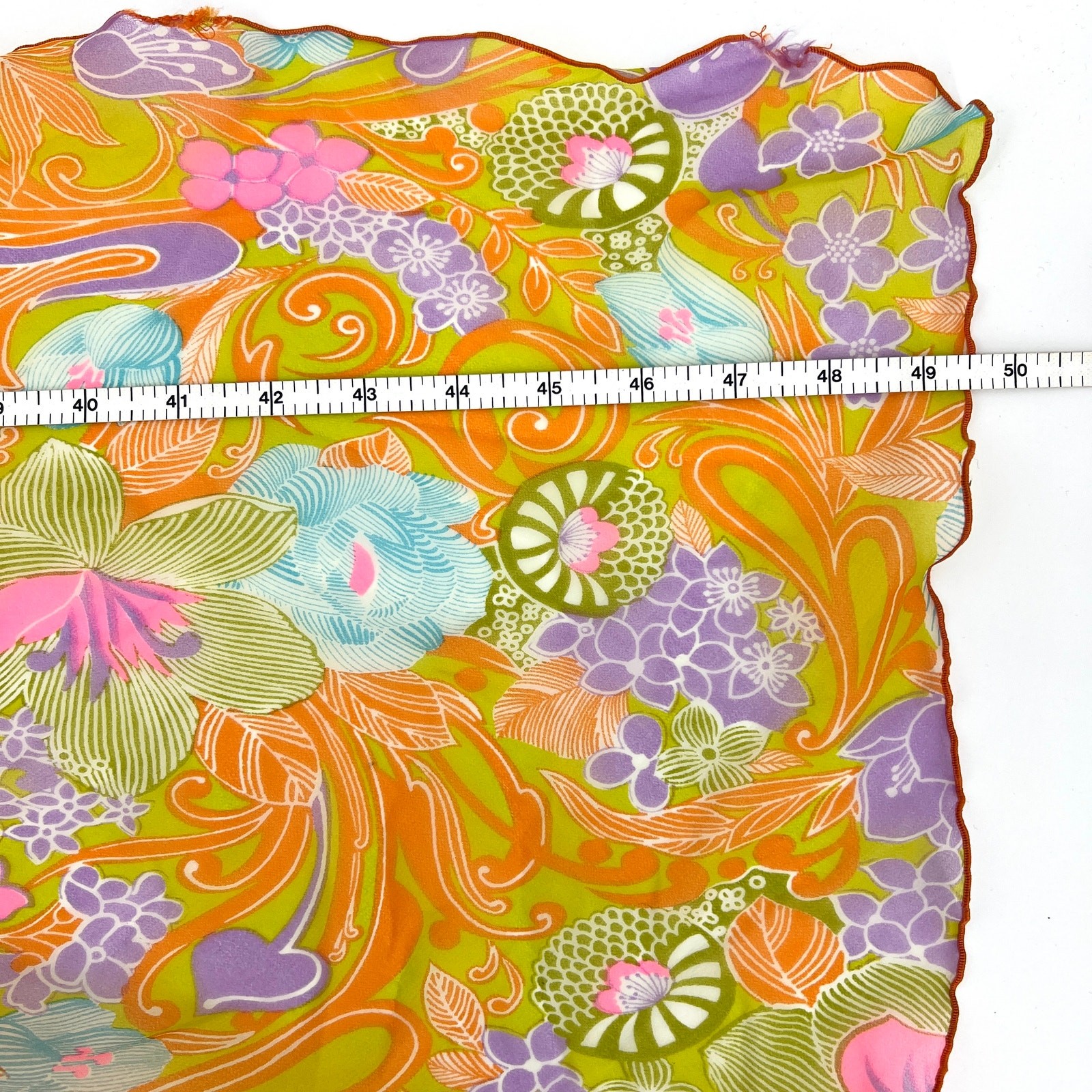 Vintage 1960s 1970s Mod Floral Watercolor Chiffon Scarf