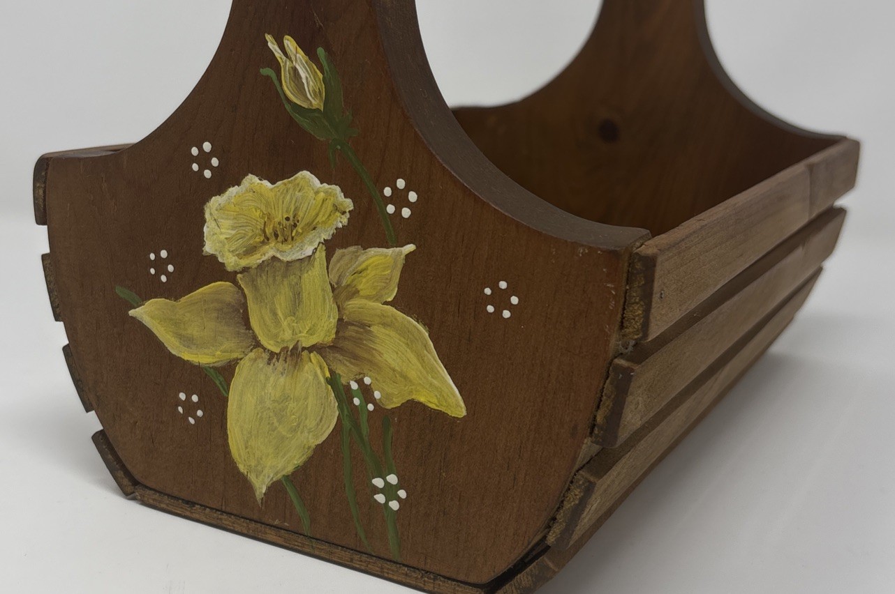 как выглядит Vintage Hand Painted Folk Art Wooden Caddy Crafts Grandmacore Boho 70s Cottage фото