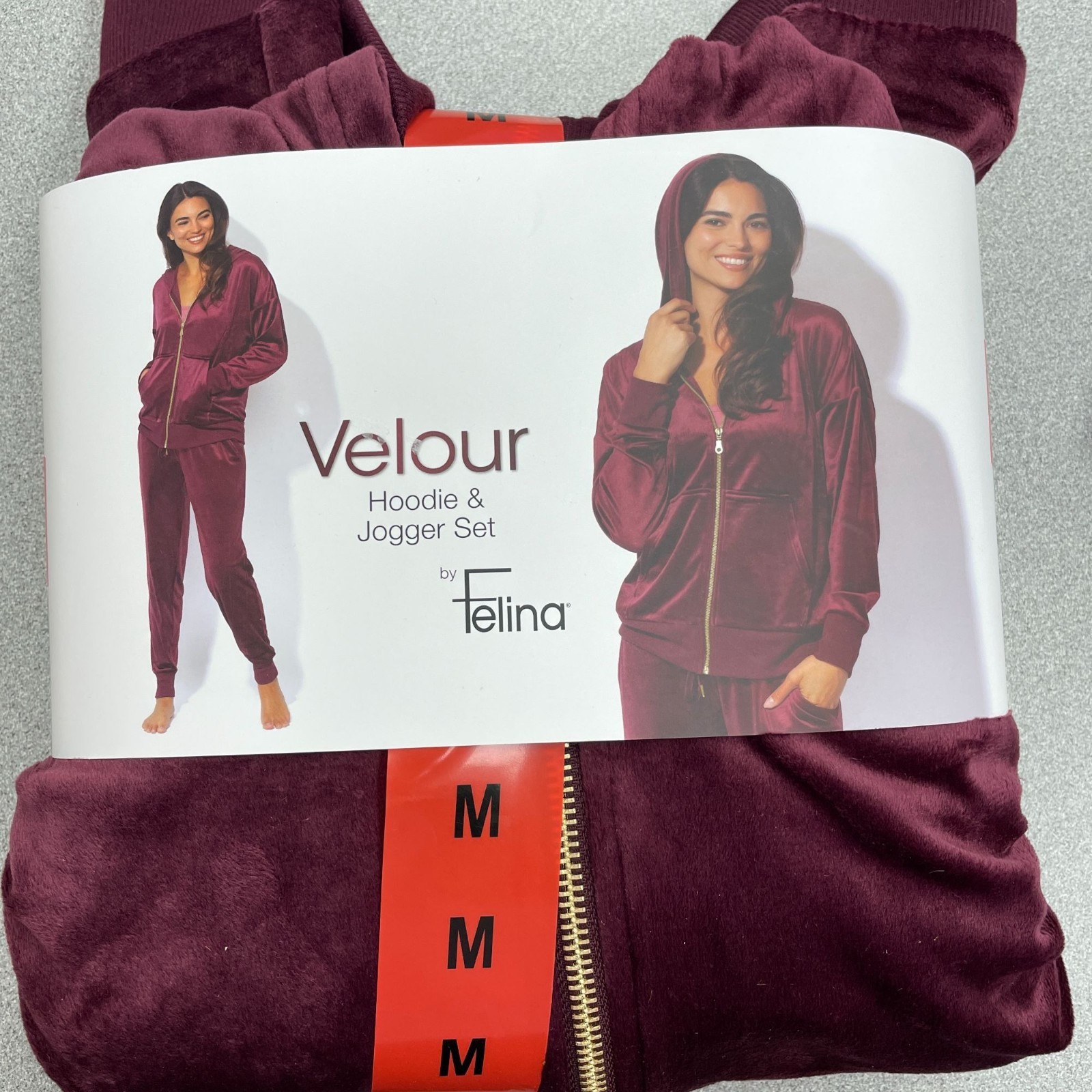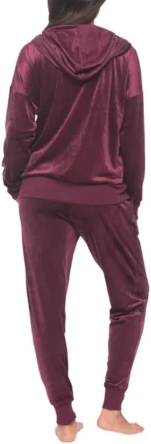 как выглядит Velour Track Suit Hoodie Jogger Set By Felina Womens M Burgundy M0448 фото