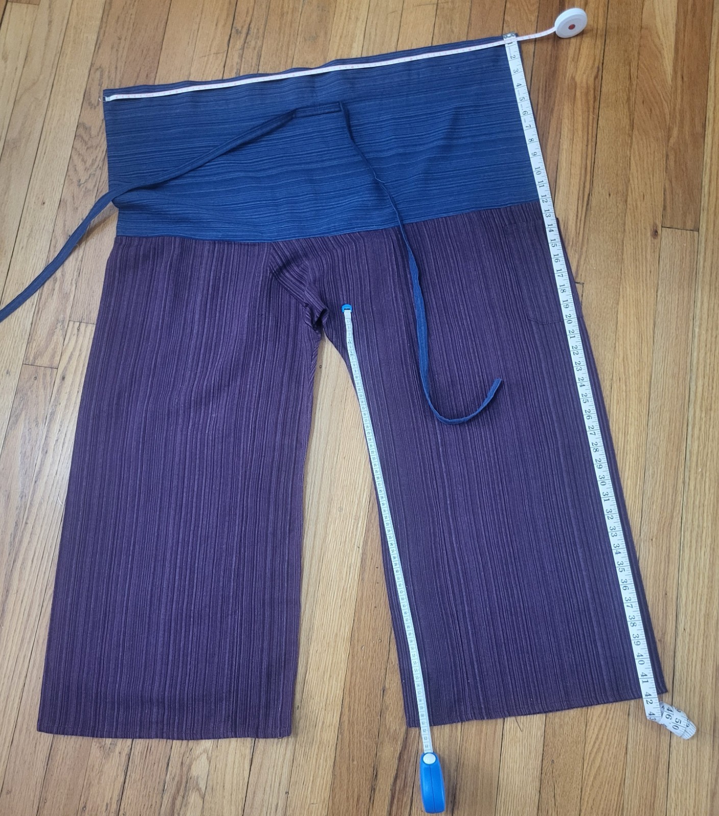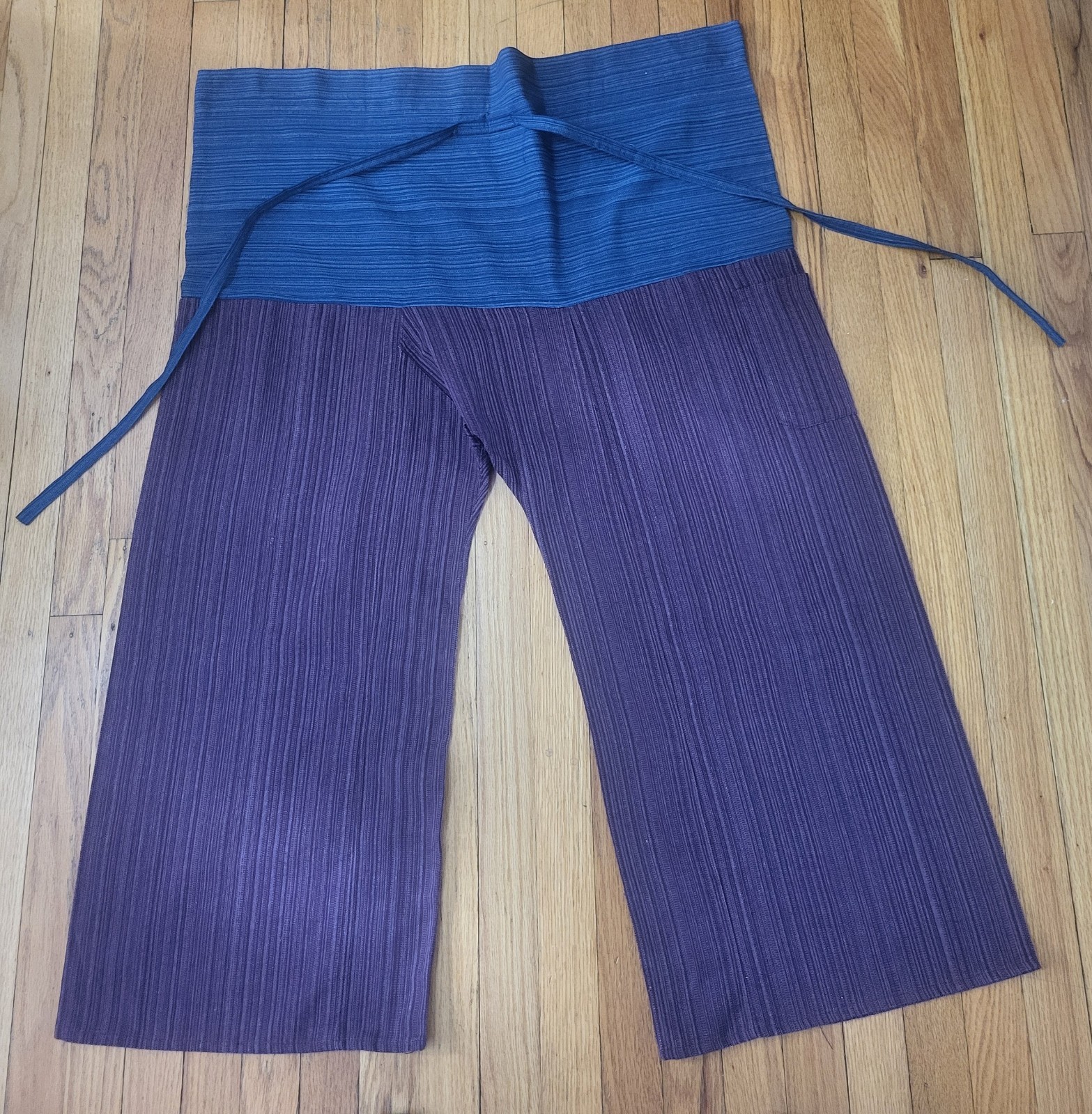 как выглядит Thai Fisherman Pants Yoga Lounge Trousers 2-Tone Purple Blue Striped Boho Unisex фото