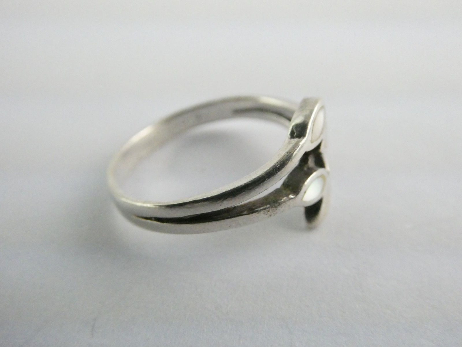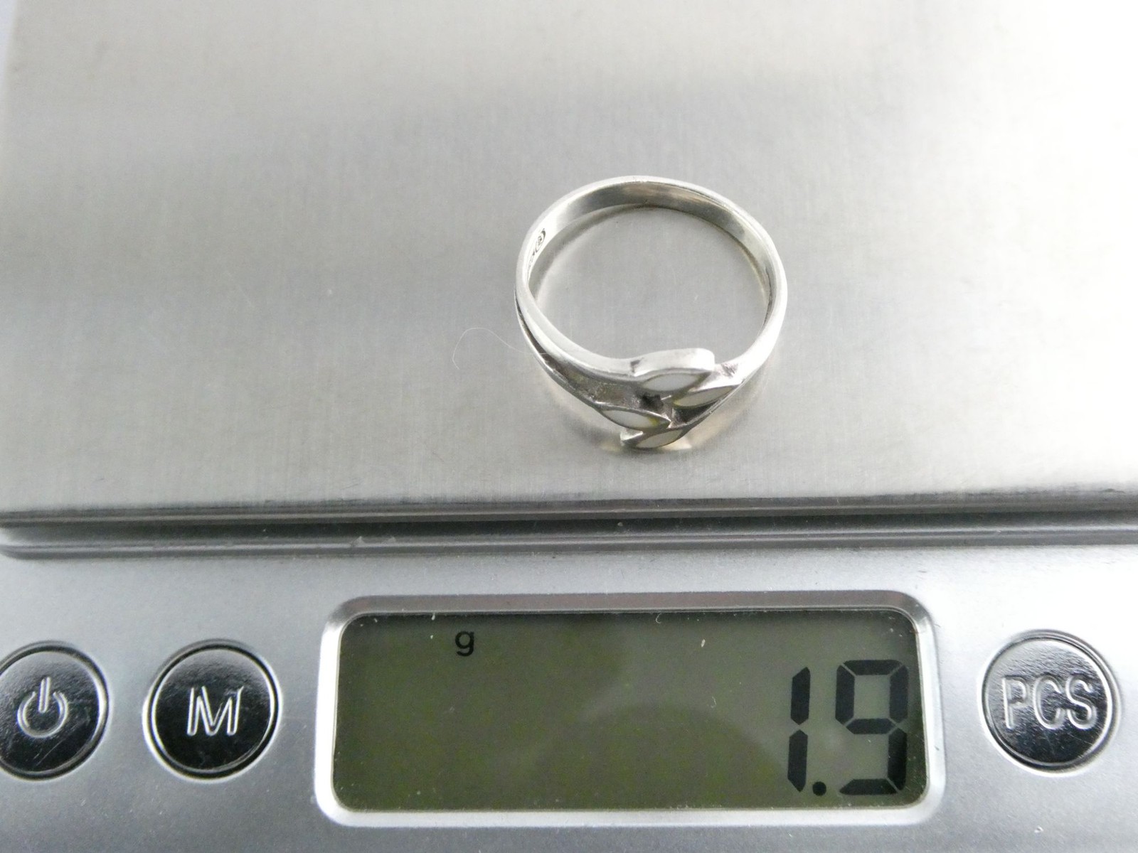 как выглядит Sterling Silver MOP Shell Inlay Leaf Design Band Ring Size 6.5 Weighs 1.9g фото