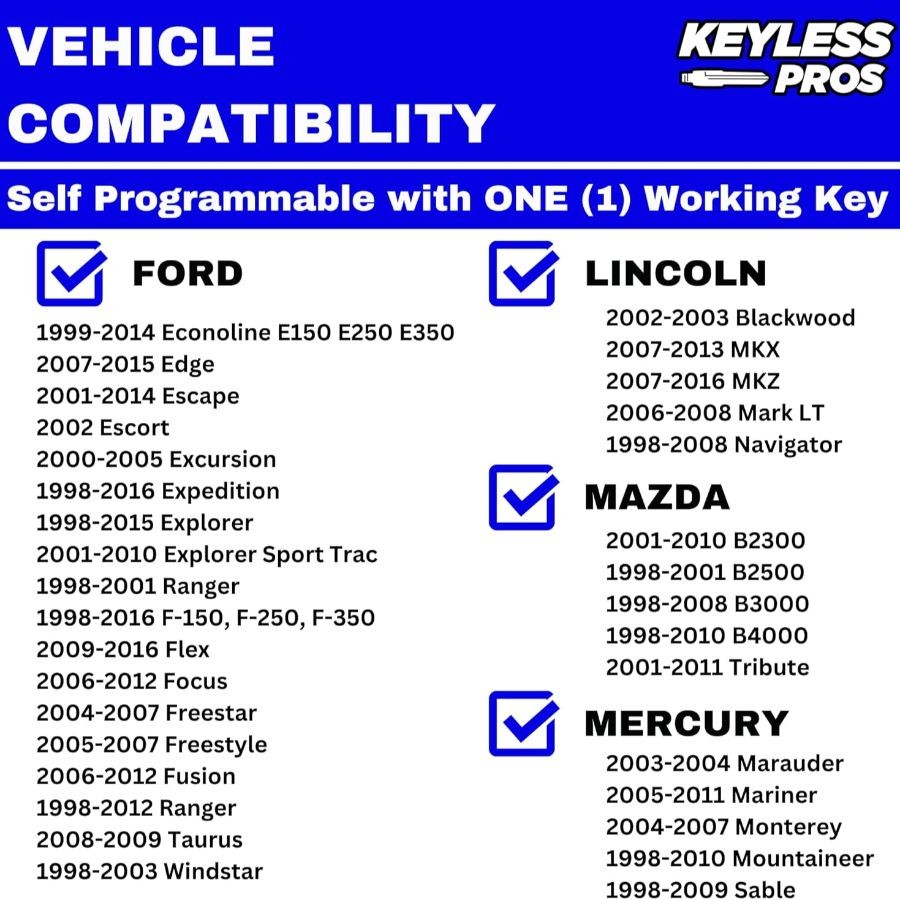 3-Button Keyless Entry Remote Key Fob Replacement, Compatible with F150 F250 F35