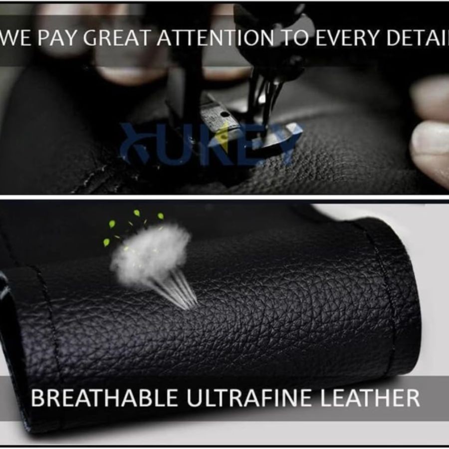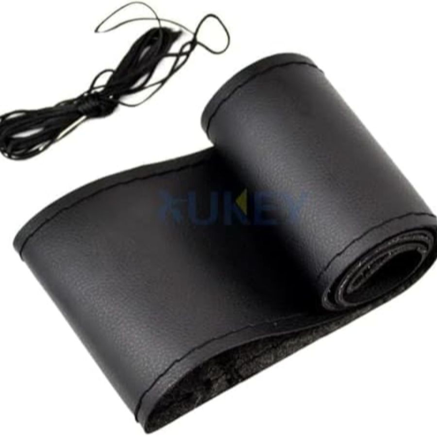 38cm/15 Inch Leather Steering Wheel Cover Stitch On Wrap, Breathable, Black