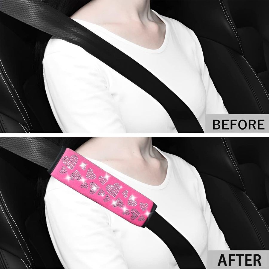 2PCS Bling Car Seat Belt Cover, Soft Shoulder Neck Protector Pad, Pink