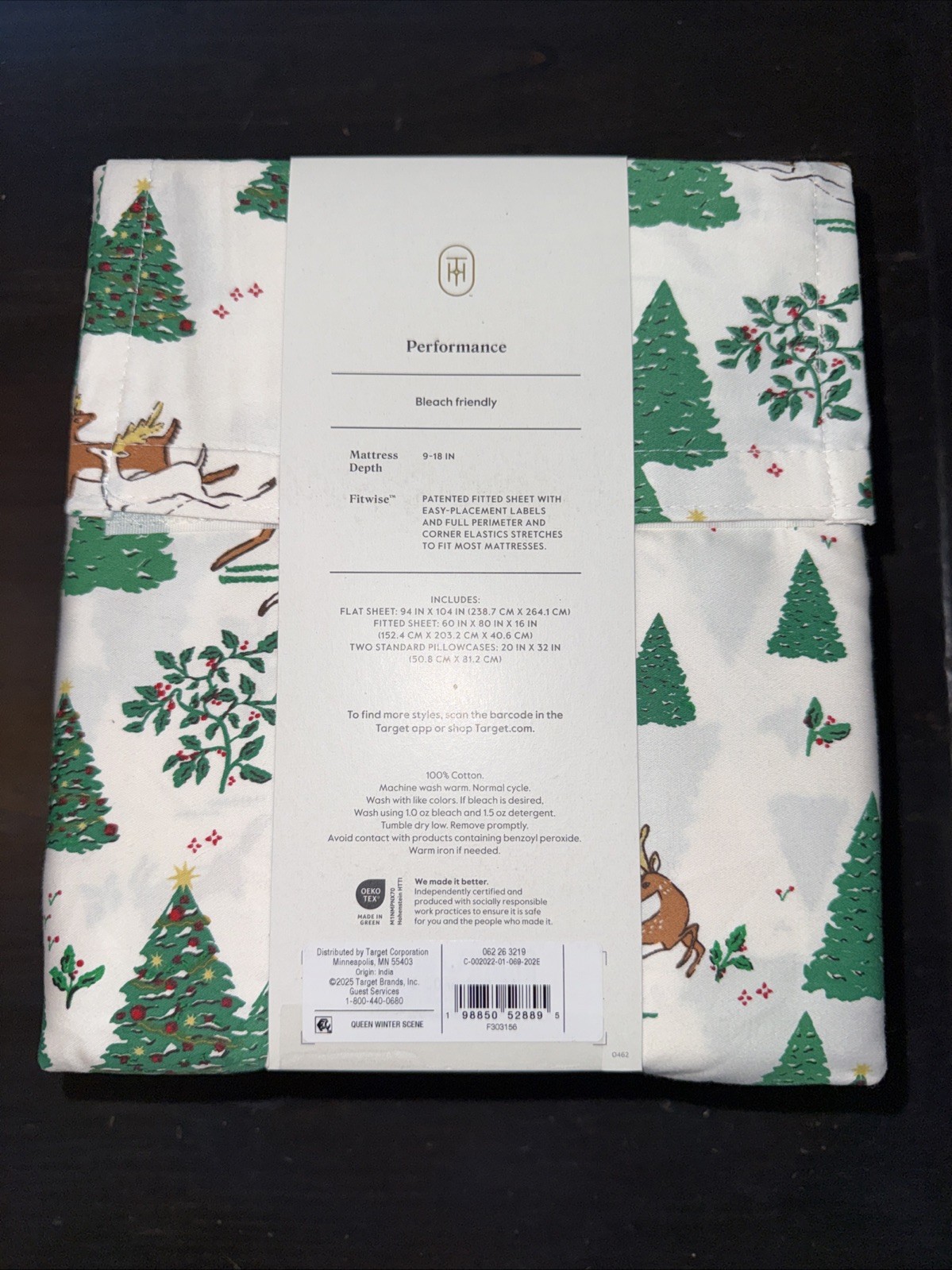 Threshold Performance 400TC Queen Sheet Set Christmas / Holidays Cotton New