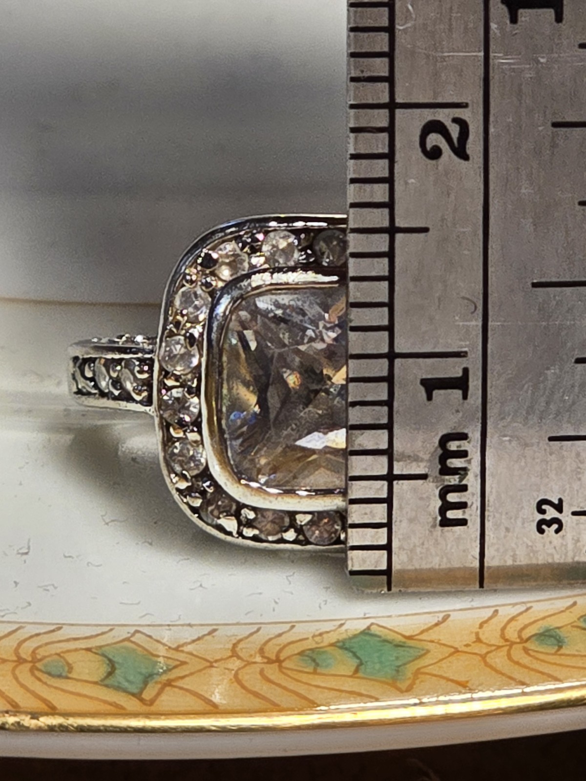 как выглядит Ring Silver Cubic Zirconia Square and Round Stones Silver Tone Size 5-5.5 Band фото
