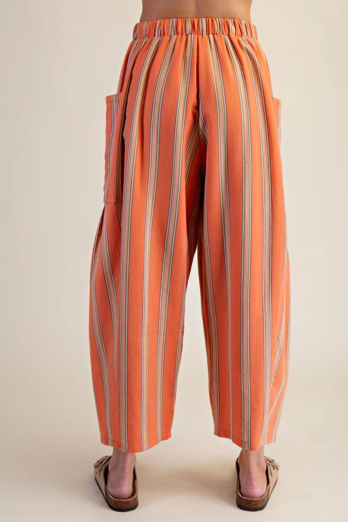 EASEL Orange Stripe Cotton Barrel Pants