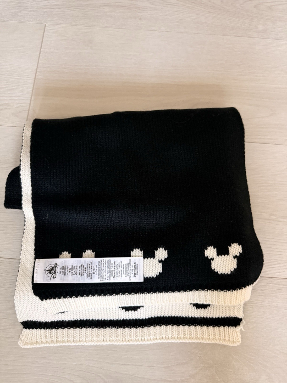 • Paris Disney Scarf- Reversible Mickey Blacks and White Soft One Size NWT