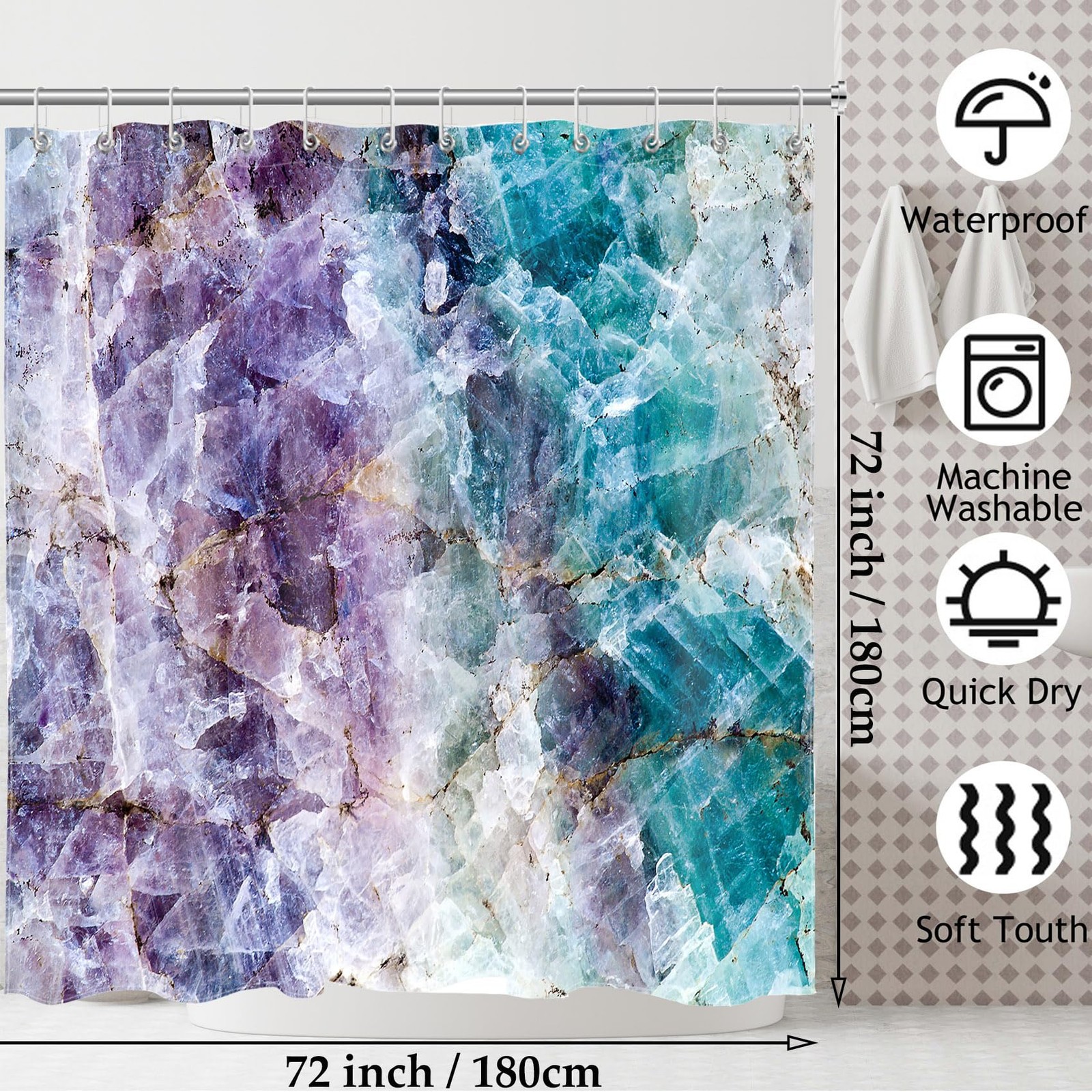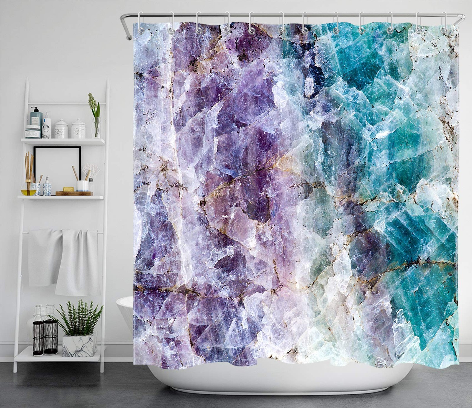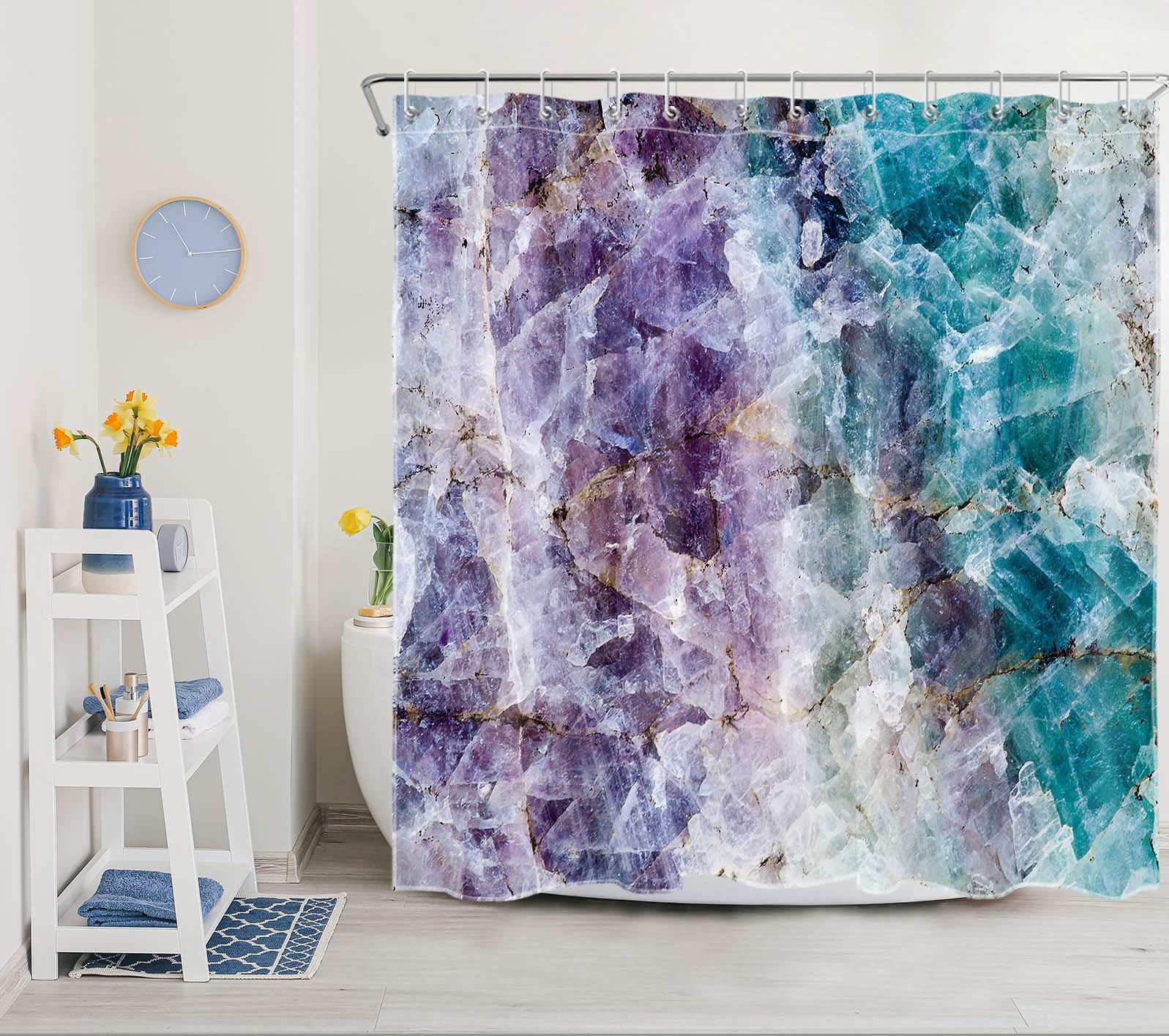 как выглядит Marble Shower Curtain Purple and Teal Bathroom Shower Curtain Sets with Hooks фото