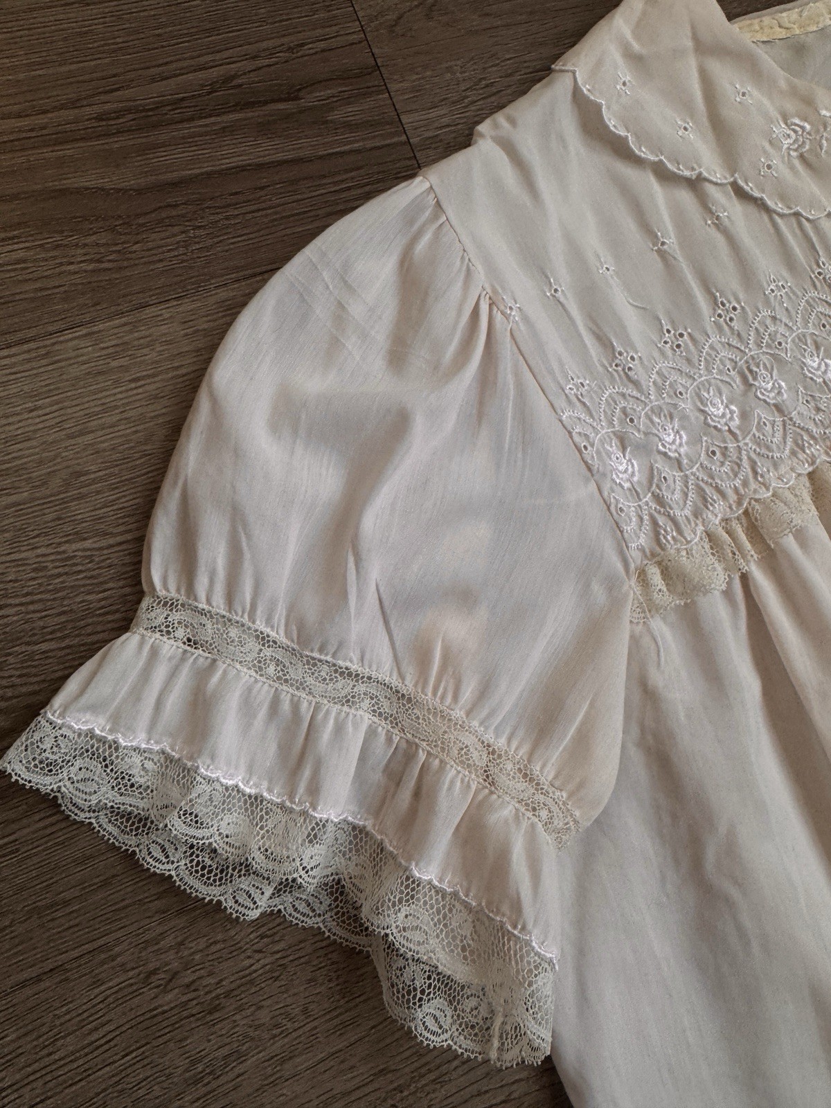 как выглядит Antique Victorian Lace Puff Sleeve Embroidered Nightgown Button Up Pink Cotton фото