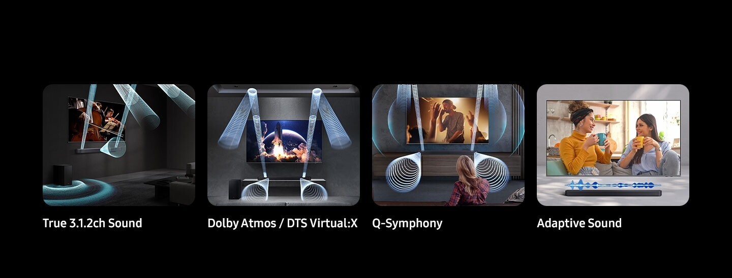 Особенности: Dolby Atmos, Surround Sound, Remote Control, Adaptive Sound, Dolby Digital +, Dolby TrueHD, Spatial Audio, Bluetooth, HDMI eARC