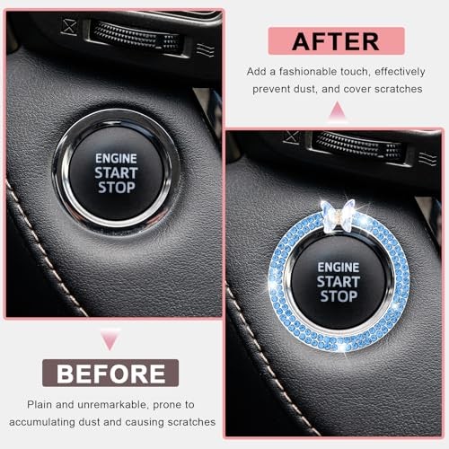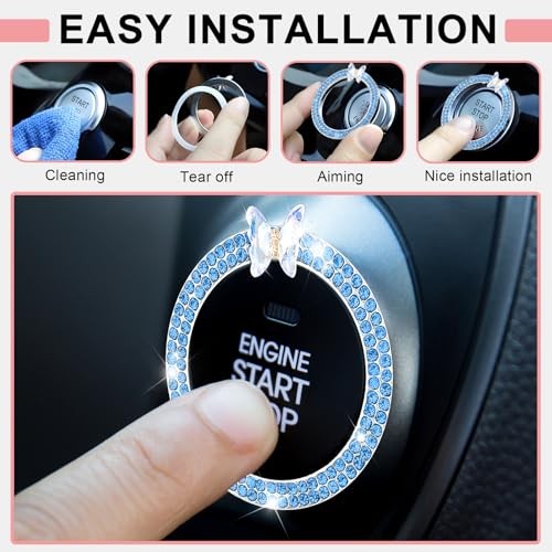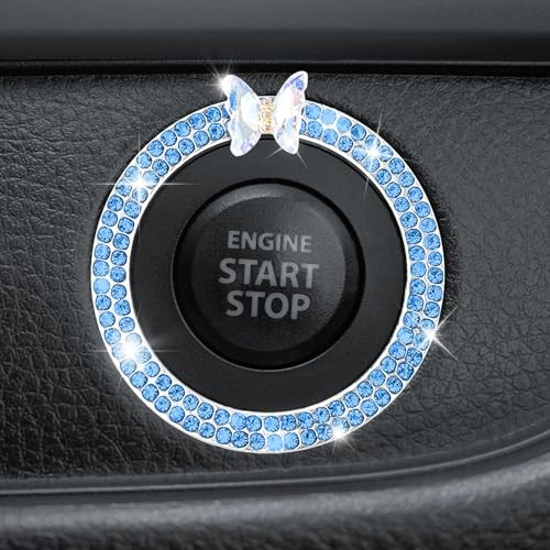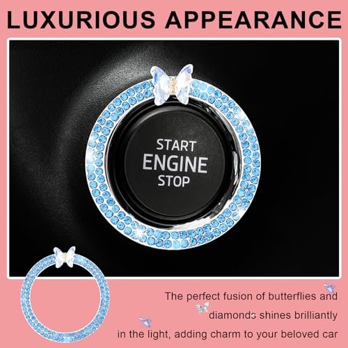 Bling Car Engine Start Button Cover,Butterfly Crystal Rhinestone Push Blue