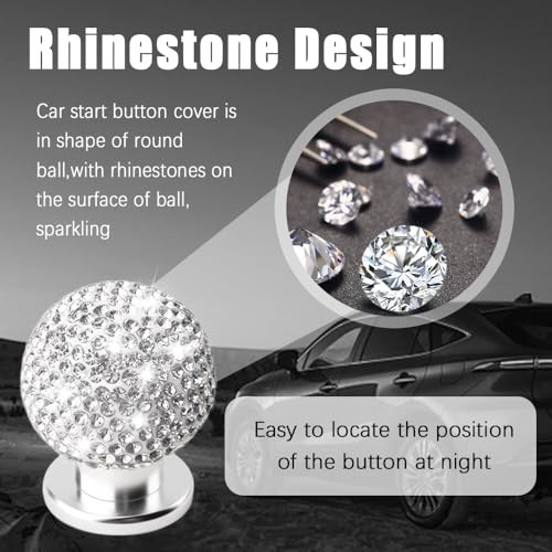 Car Push Start Button Cover,Bling Round Ball Car Push to Start Button Cover