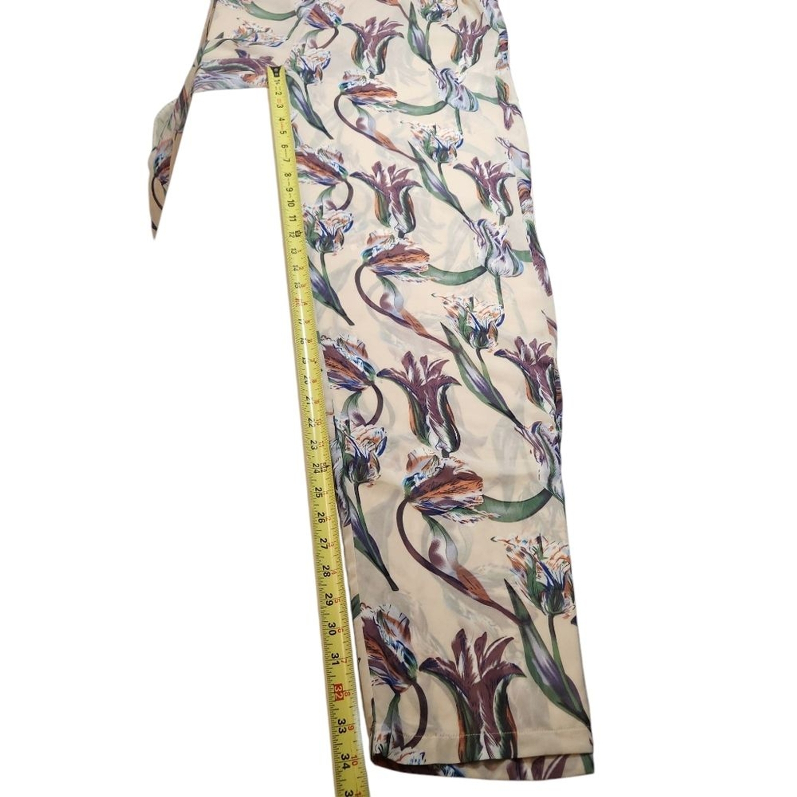 как выглядит NWT Pretty Little Thing Pant Dusty Pink Floral Wide Leg Sheer High Rise Cream 14 фото