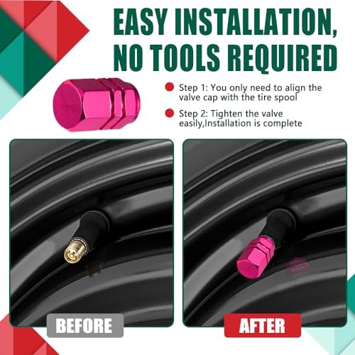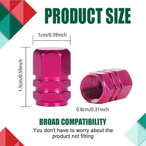 8PCS Car Tire Valve Stem Caps, Aluminum Alloy Air Caps Cover with 8pcs Pink