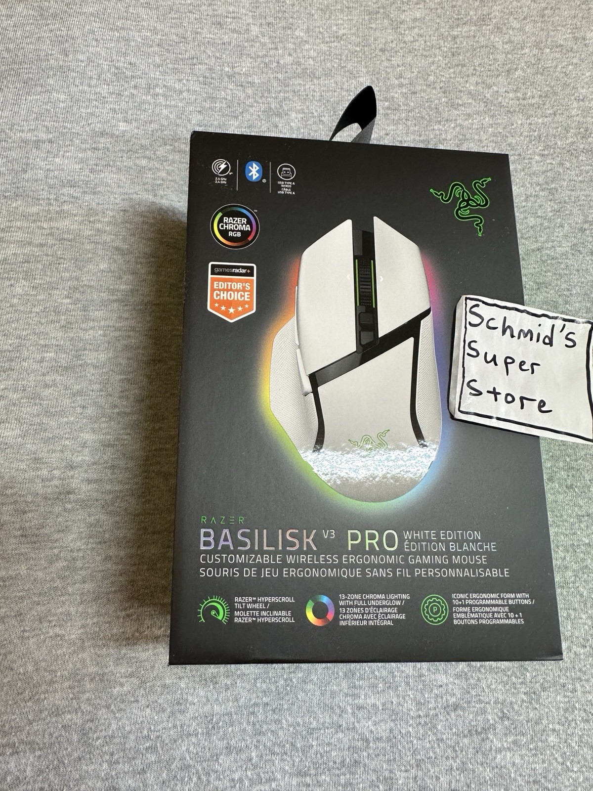 Razer Basilisk V3 Pro White Wireless Gaming Mouse 30K DPI HyperScroll Chroma RGB