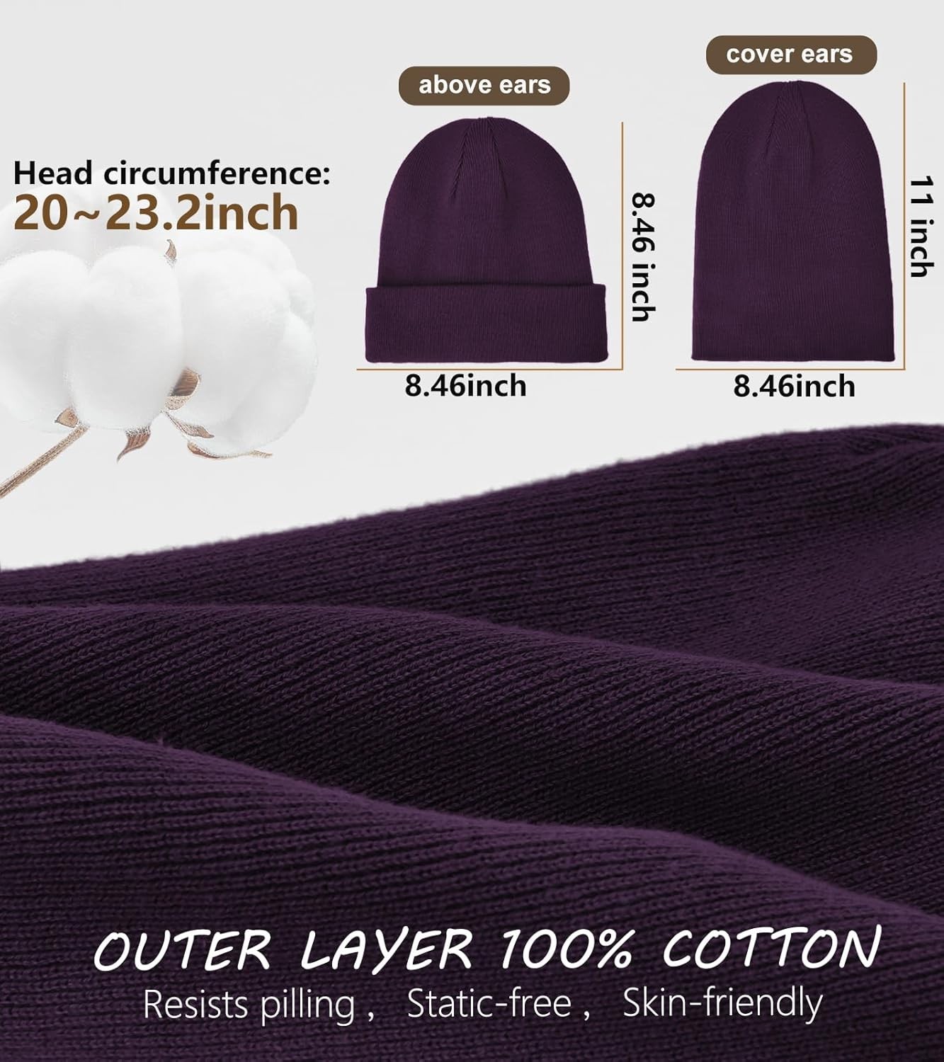 Winter Fleece Lined Beanie for Men Women, 100 Cotton Knit Thick Warm Beanies Ha