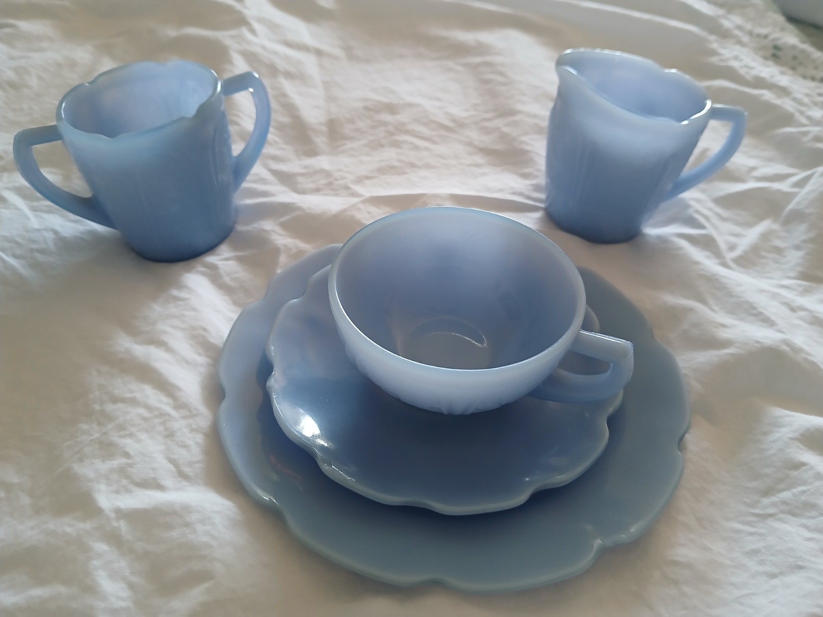 Vintage 1930s Jeanette Delphite Blue Cherry Blossom Children s Tea Set 14 Pieces