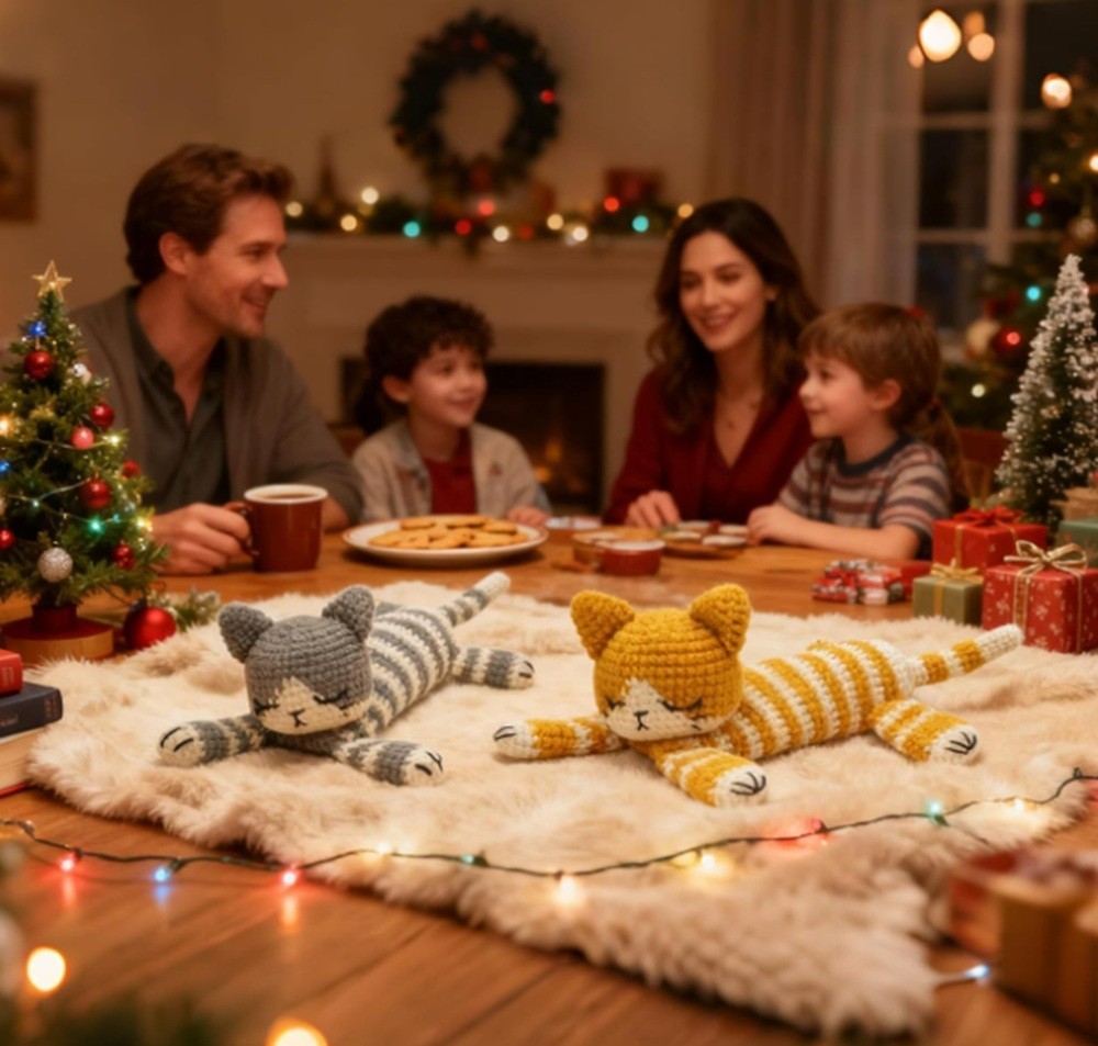 2pc Sleeping Cat Amigurumi Crochet Kit Beginner DIY w/ Video Tutorial Handbook