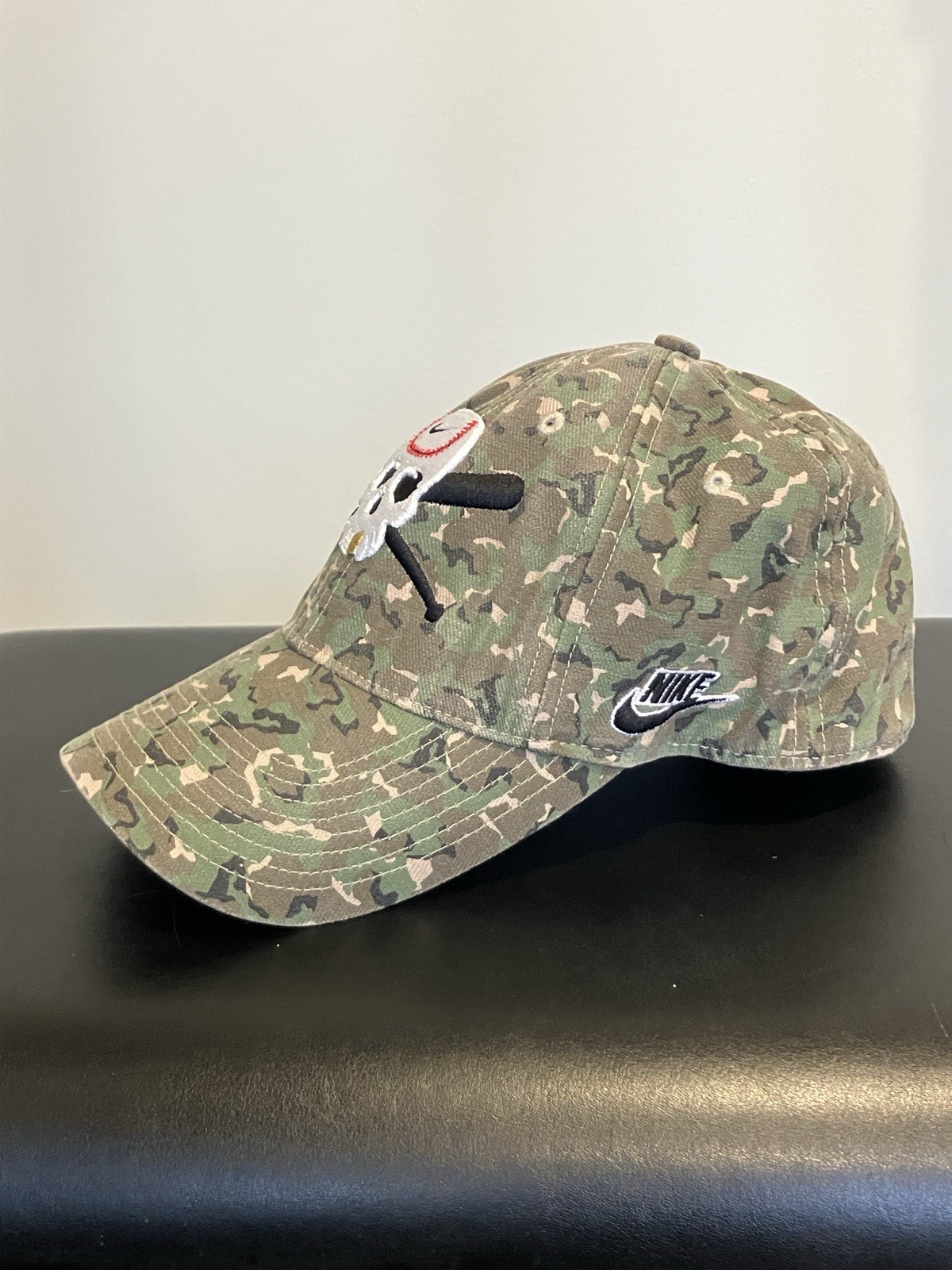 как выглядит NWOT Rare NIKE Swoosh Skull Stretch Fit Camouflage Baseball Hat, One Size Womens фото